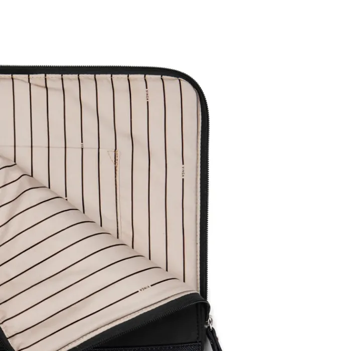 Custodia imbottita per proteggete il tuo computer portatile e tablet da 16″ con stile ed eleganza. Dispone di una cerniera extra lunga per facilitare l’accesso. È dotata di una tasca interna per gli oggetti di piccole dimensioni. Nota bene: può calzare diversamente a seconda del modello di portatile. È realizzata in simil camoscio riciclato con dettagli in PU e fodera in rPET. Rifinita con eleganti inserti color argento. Certificata dal Recycled Claim Standard (RCS), che garantisce che l’intera catena di approvvigionamento dei materiali riciclati sia certificata. Il contenuto totale di materiale riciclato si basa sul peso totale del prodotto. Questo prodotto contiene il 49% di poliestere riciclato certificato RCS e il 3% di poliuretano riciclato certificato RCS.