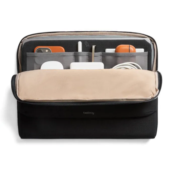 Questa custodia consente di riporre in modo ordinato e facilmente accessibile gli strumenti di lavoro più importanti. Adatto a computer portatili fino a 16”. Include una tasca porta pc imbottita in foam, una tasca frontale ripiegabile che consente di accedere al computer e due tasche portapenne in rete. Ulteriore spazio per oggetti ingombranti. Sia la cerniera che il tessuto sono resistenti all’acqua. Fodera morbida al tatto.