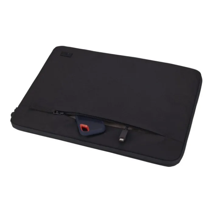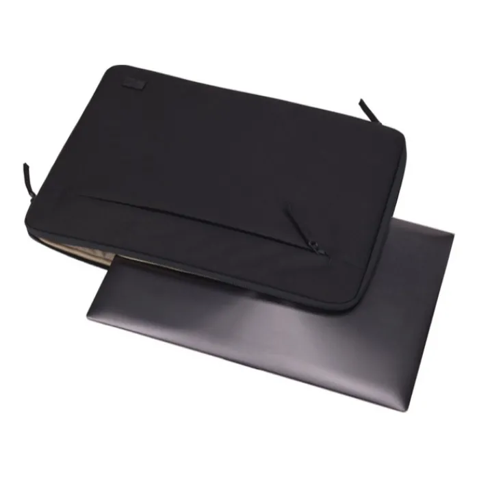 Custodia per pc portatile da 14″ della Case Logic Invigo, realizzata con materiali riciclati e presenta un’imbottitura interna di 10 mm di spessore per offrire protezione. È realizzata con un esterno in poliestere 600D riciclato al 100% e una fodera in poliestere 150D. La tasca con cerniera sulla parte anteriore consente di riporre comodamente i cavi di alimentazione e piccoli accessori. L’apertura con cerniera a tre quarti consente di estrarre il portatile dalla parte superiore o laterale della custodia.