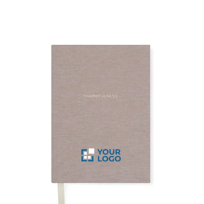 Diario formato A5 con copertina in tessuto di poliestere riciclato, 208 pagine a righe color crema da 80 g/m² e nastrino segna pagina. Cattura la bellezza delle esperienze e delle riflessioni quotidiane. Le sue pagine con domande esplicite in inglese e spazi da riempire offrono un modo semplice per documentare i tuoi pensieri. Grazie al suo design elegante e senza tempo, si integra perfettamente in qualsiasi ambiente. La certificazione Global Recycled Standard (GRS) assicura che l’intera catena di approvvigionamento dei materiali riciclati sia certificata. Il contenuto totale di materiale riciclato si basa sul peso totale del prodotto. Questo prodotto contiene il 73% di carta riciclata certificata GRS.