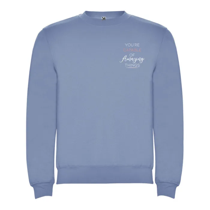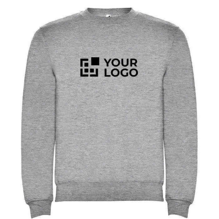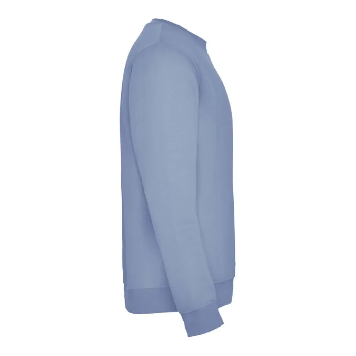 Felpa classica con girocollo, polsini ed elastico in vita in elastan a costine 1×1. Copri cerniere rinforzate sul colletto. Etichetta rimovibile. 50% cotone e 50% poliestere, 280 g/m². Il modello della foto è alto 185 cm ed indossa una taglia L.