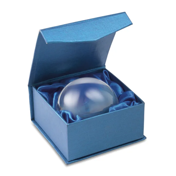Fermacarte semicircolare presentato in elegante scatola regalo con interno foderato.