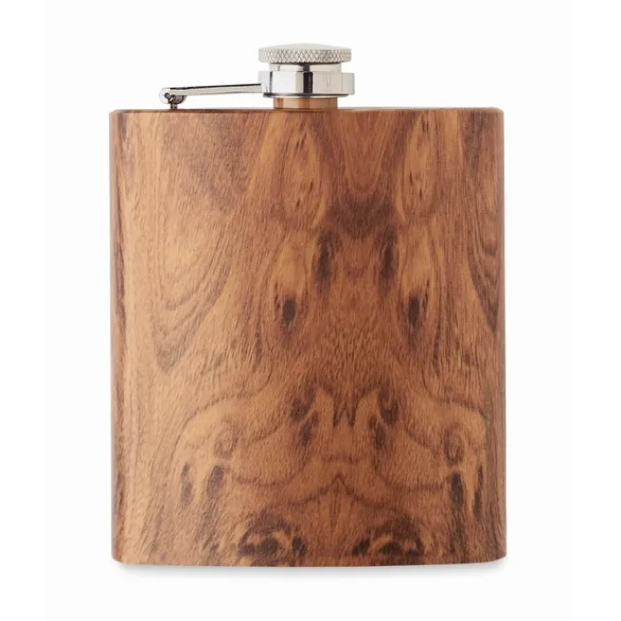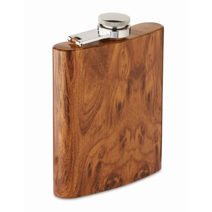 Fiaschetta in acciaio inox riciclato (90% riciclato e 10% nuovo) con aspetto in legno. Capacità 190 ml.