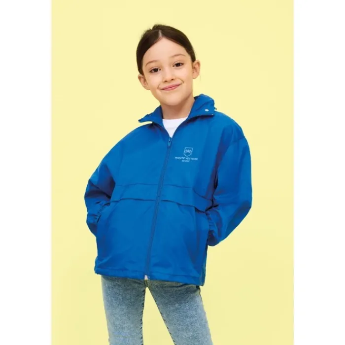Giacca a vento da bambino con cerniera e cappuccio con cordino a scomparsa nel colletto. Ha 2 tasche esterne con zip, sistema di piegatura «in bag» con elastici da allacciare in vita, polsini elasticizzati e occhiello di ventilazione. Antivento e idrorepellente. Tessuto: 210g/m² 100% nylon 210T. Taglie disponibili: 5-6 anni (105/116 cm), 7-8 anni (117/128 cm), 9-11 anni (129/141 cm), 12-14 anni (142/164 cm), 15-16 anni (165/176 cm).