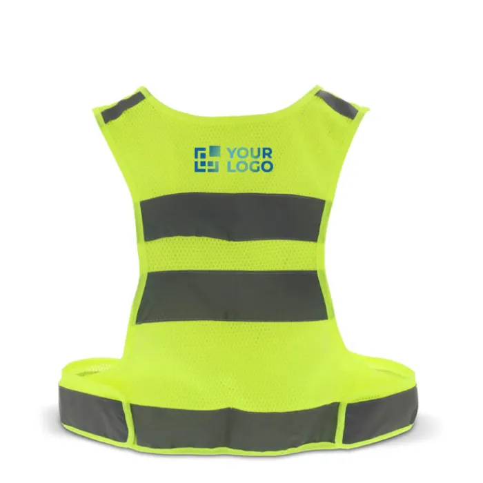 Gilet sportivo riflettente realizzato in poliestere adatto per praticare sport al buio. È regolabile in base alla taglia. Con questo gilet di sicurezza riflettente è possibile uscire in sicurezza anche di notte.