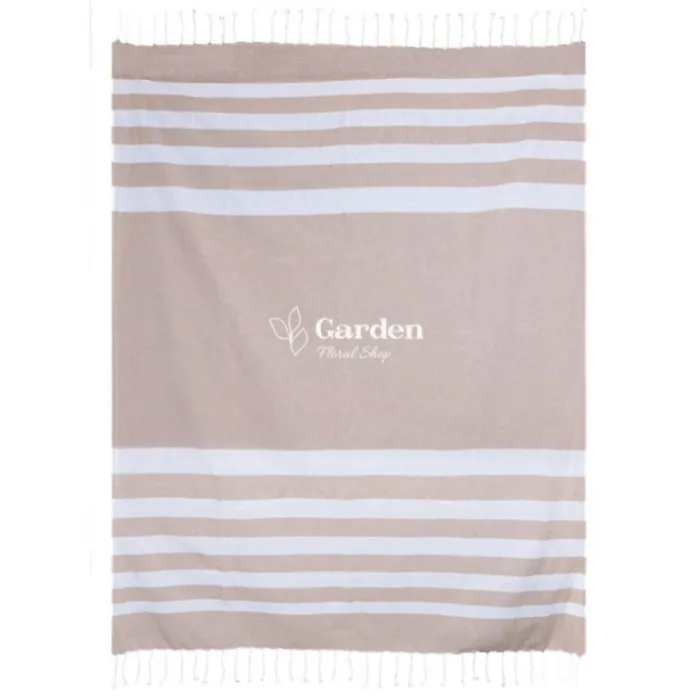 Pareo con frange in cotone riciclato 145 g/m2 e poliestere.