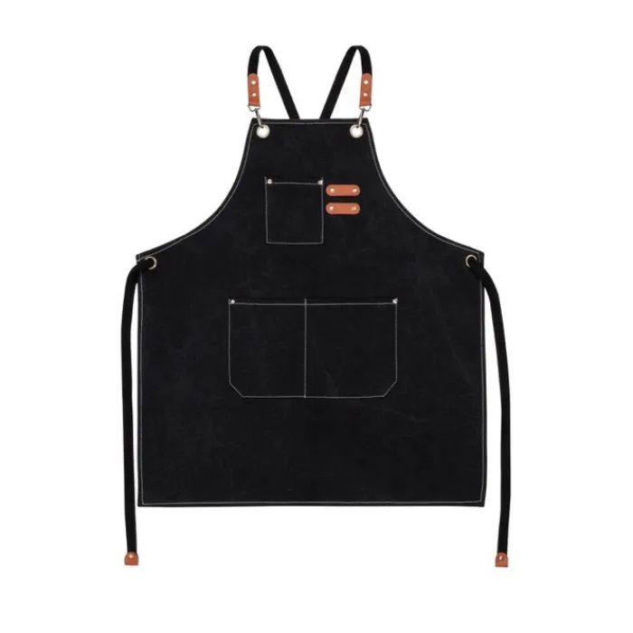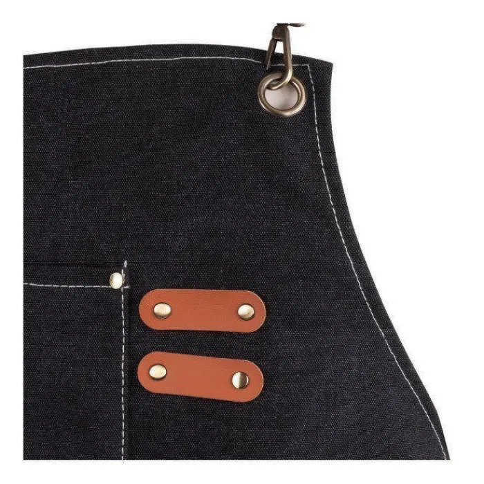Grembiule da 350 g/m² realizzato in una miscela di 50% cotone e 50% poliestere, con effetto denim e dettagli in PU.