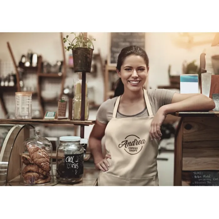 Grembiule con 2 tasche frontali, realizzato in cotone organico da 200 gr/m². Dotato di certificazione GOTS che garantisce una raccolta ecologicamente e socialmente responsabile della materia prima, della produzione fino all’etichettatura. Prodotto secondo gli standard OEKO-TEX.