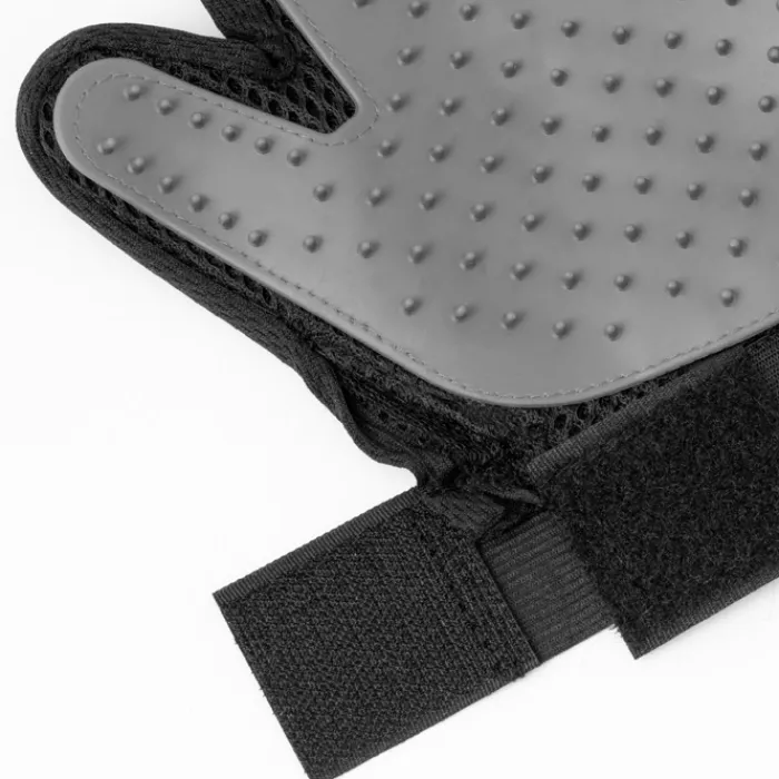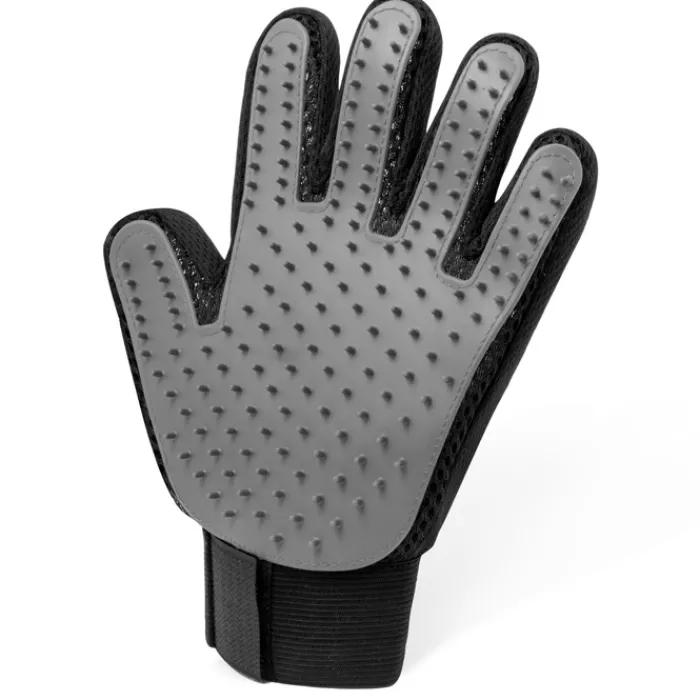 Guanto da toelettatura per animali domestici realizzato in morbido poliestere e TPR. Progettato per coccolare gli animali domestici, è facile da usare e si adatta alla mano grazie al suo design ergonomico, con un cinturino in velcro adattabile. Le morbide setole in TPR trattengono i peli sciolti per una spazzolatura facile e confortevole. Presentato in un sacchetto individuale riciclato. Taglia unica.