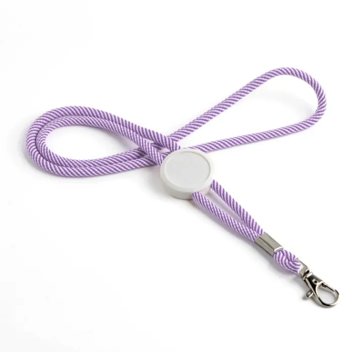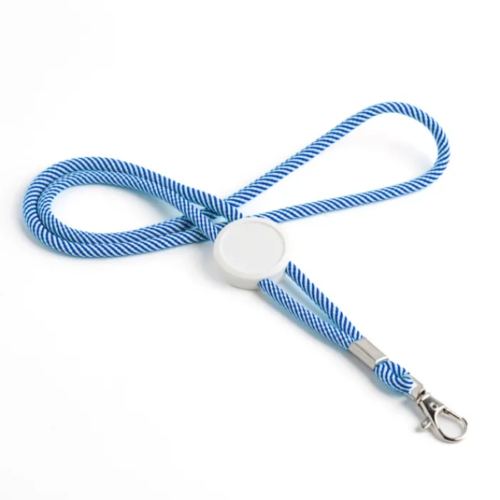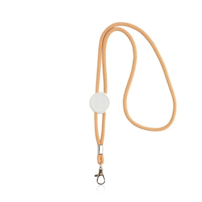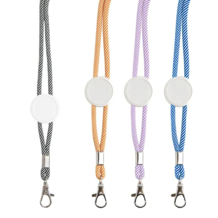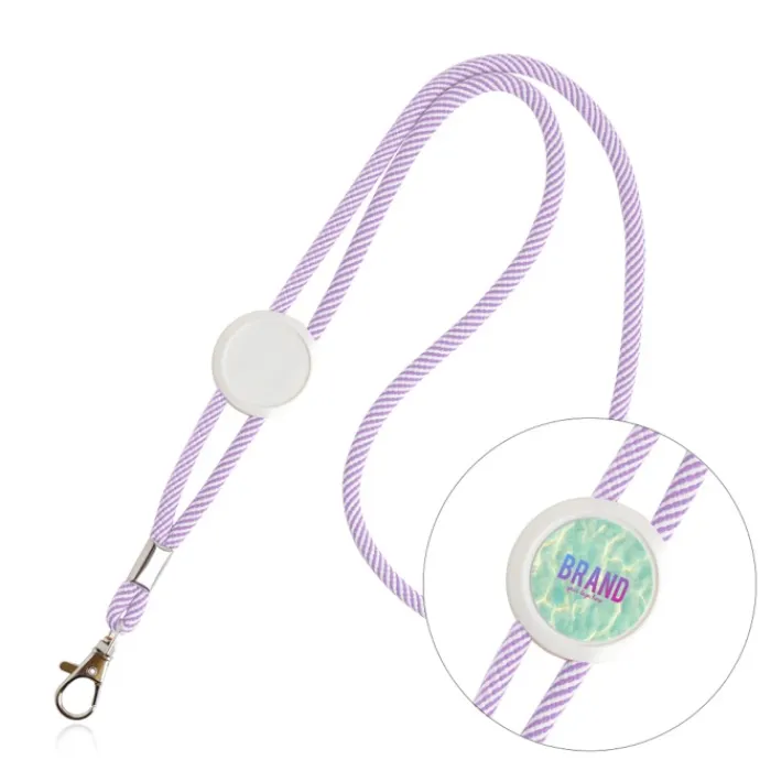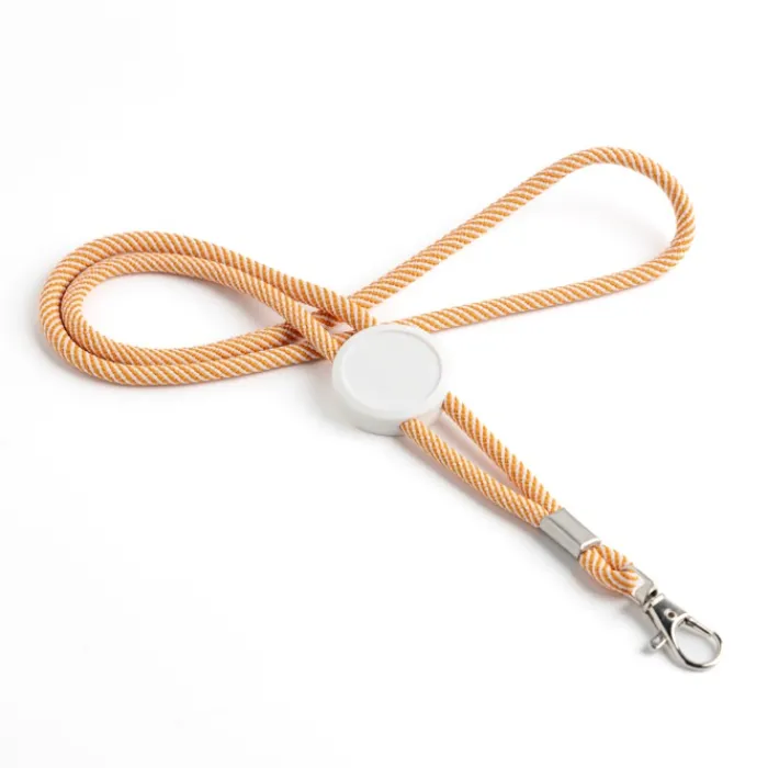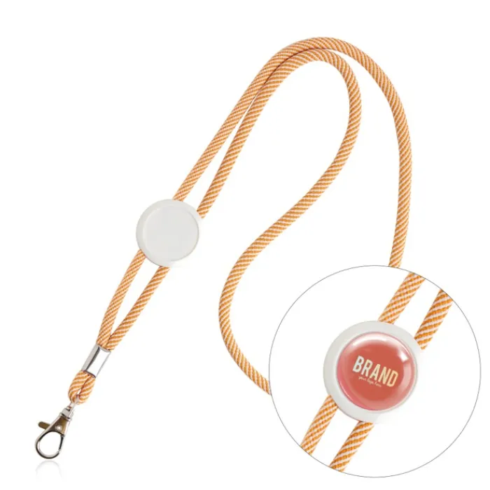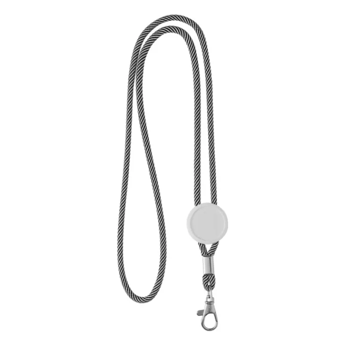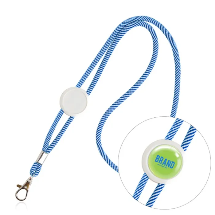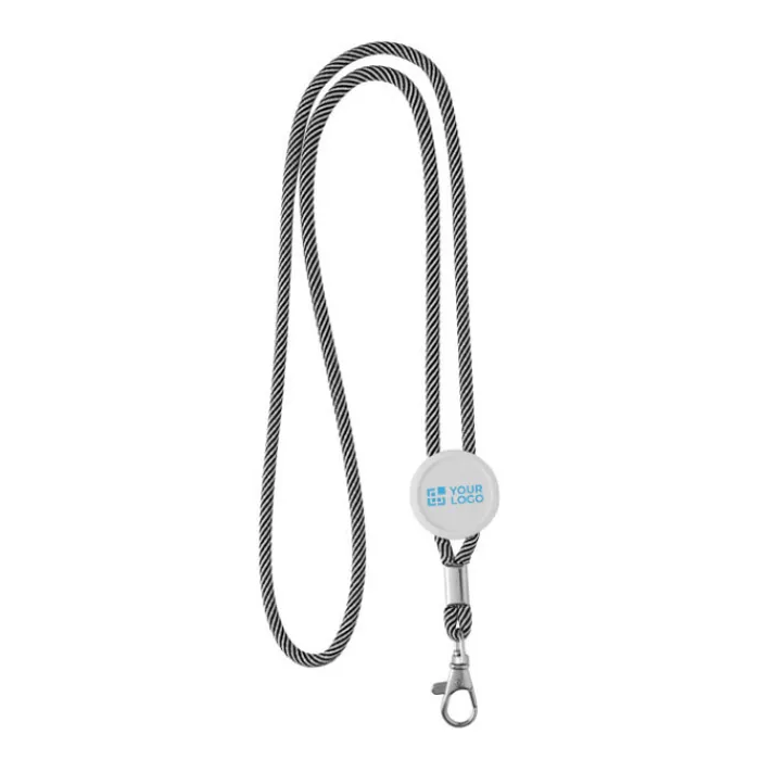 Cordino porta badge in poliestere, regolabile con moschettone in metallo. Si distingue per il suo design tubolare e l’alternanza di righe nere e bianche che gli conferiscono un tocco moderno e rilassato. Il regolatore in plastica è stato appositamente progettato per la personalizzazione tramite resina. Aggiungi il tuo logo, slogan o design esclusivo per creare un articolo unico che rifletta l’identità del tuo marchio.