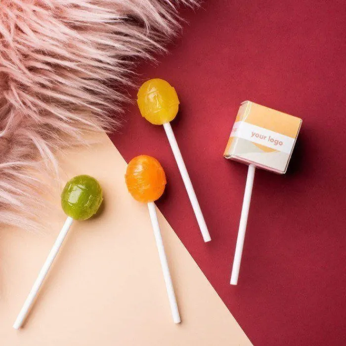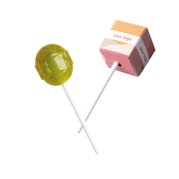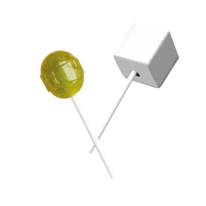 Lecca lecca con doppio sapore alla frutta ricchi di vitamine A, C ed E. Le coppie di sapori sono: limone e arancia, mela e lime, mora e ribes nero, ciliegia e lampone. Confezionati singolarmente in una scatolina cubica bianca interamente personalizzabile.