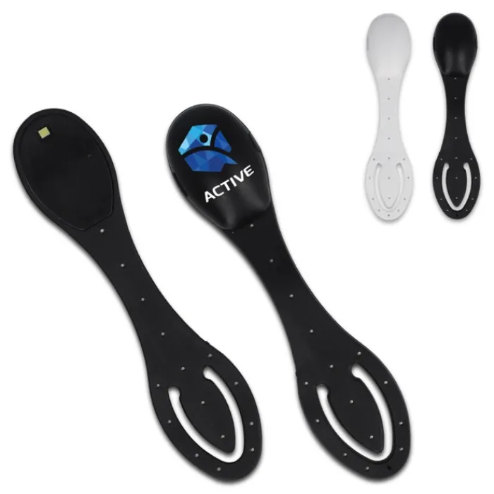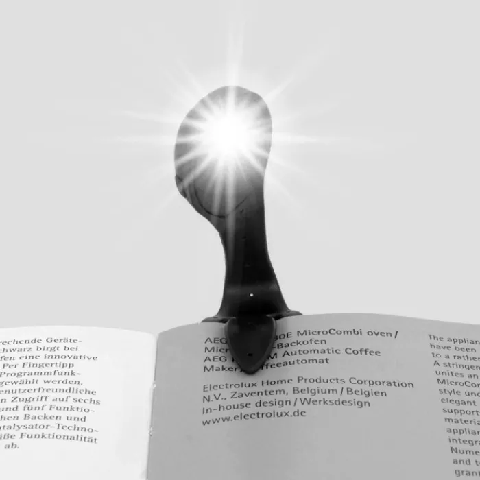 Luce da lettura in ABS riciclato, design flessibile con funzione segnalibro. 20 lumen, batteria ricaricabile da 80 mAh.
