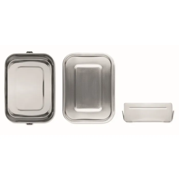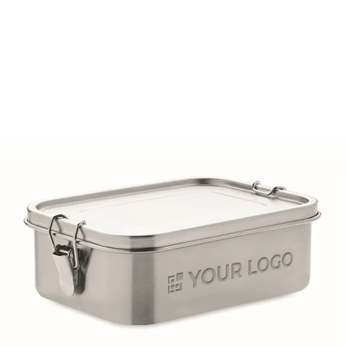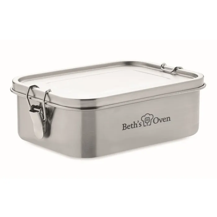 Portapranzo in acciaio inossidabile con fibbie laterali forti e sicure. Include un divisore interno, per poter separare il cibo. Capacità: 1200 ml. Non può essere inseirito nel microonde. Può essere lavato in lavastoviglie, tuttavia non possiamo garantire la durata della stampa a colori nel caso in cui venga inserito nella lavastoviglie. Suggeriamo di lavarlo a mano, oppure di personalizzare il coperchio con il vostro logo al fine di poter inserire il contenitore nella lavastovigle senza coperchio, oppure inciderlo a laser.