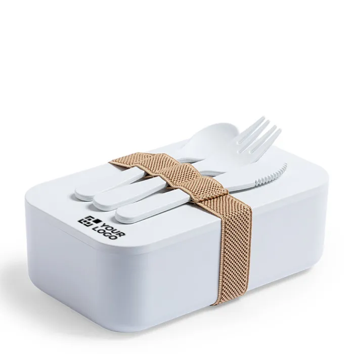 Lunch box realizzato in PLA compostabile al 100%, senza BPA. Include un nastrino di sicurezza con anello per forchetta, cucchiaio e coltello. Capacità 1L. Non può essere inseirito nel microonde, né può essere lavato in lavastoviglie.