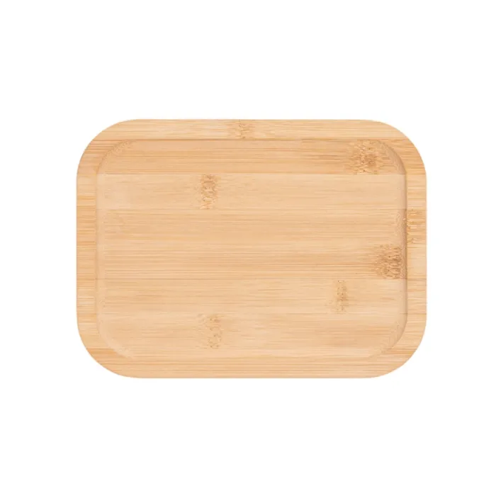 Contenitore per alimenti in vetro borosilicato con coperchio in bambù e guarnizione in silicone che rende la chiusura ermetica. Può essere inserito nel microonde e in lavastoviglie, rimuovendo il coperchio. Fornito in scatola di carta kraft.