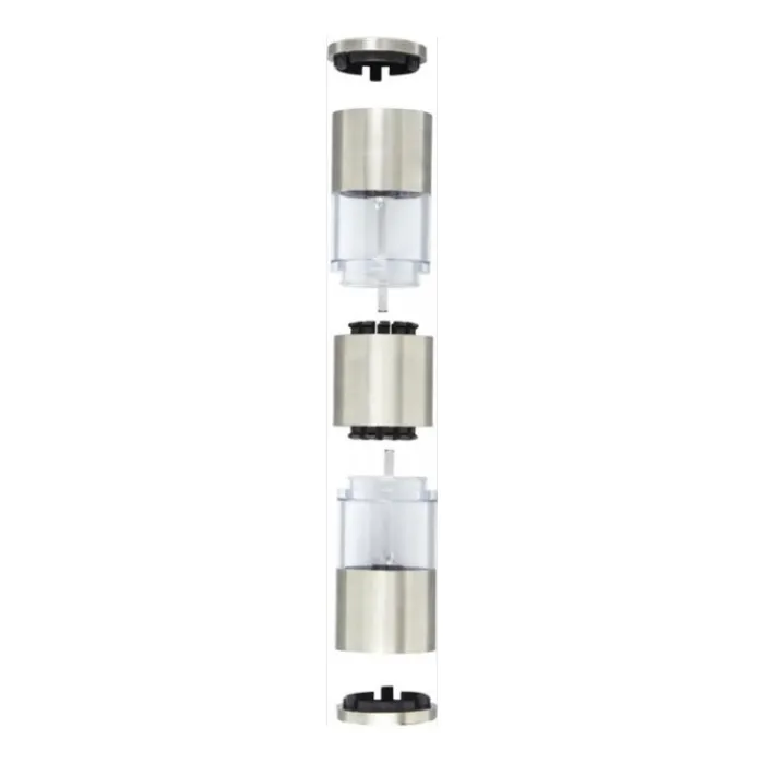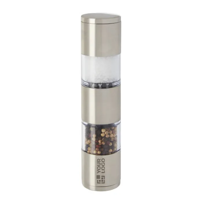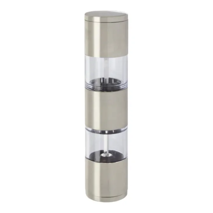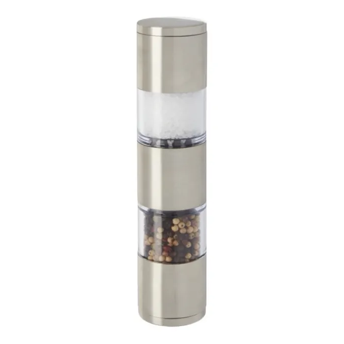 Macinino in acciaio inossidabile e plastica PS a doppia funzione con un’estremità per il sale e l’altra per il pepe. Pepe e sale non inclusi.
