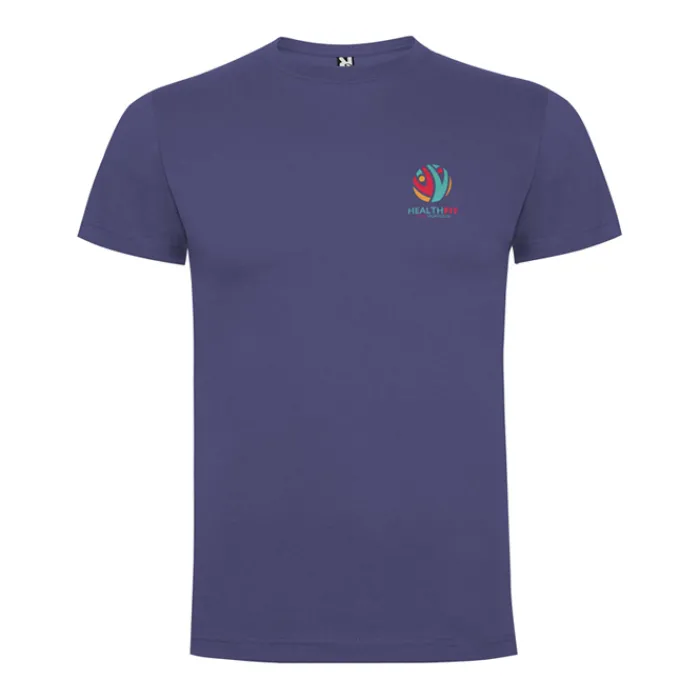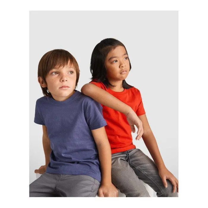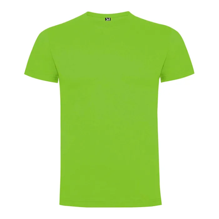 T-shirt a maniche corte con girocollo a 4 strati, cuciture coperte e rinforzate su collo e spalle, e cuciture laterali.