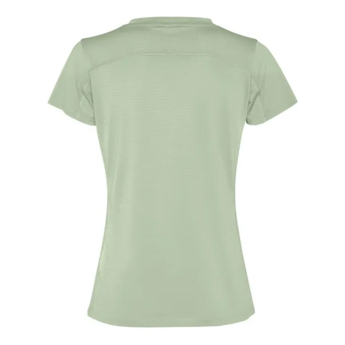 T-shirt sportiva a maniche corte da donna in tessuto leggero Mesh con finiture cool fit 100%, realizzato in poliestere riciclato da 100 g/m². Colletto con dettaglio incrociato e cuciture coperte. Parte posteriore e maniche in tessuto traspirante. Cuciture in avanti e inclinate sui lati e sulle spalle. Orlo arrotondato. Una combinazione di tessuti traspiranti ed elastici. Etichetta rimovibile.