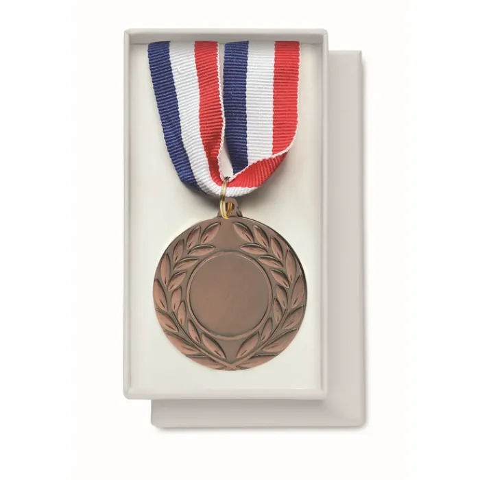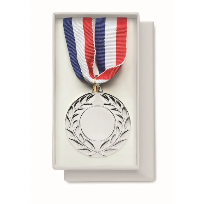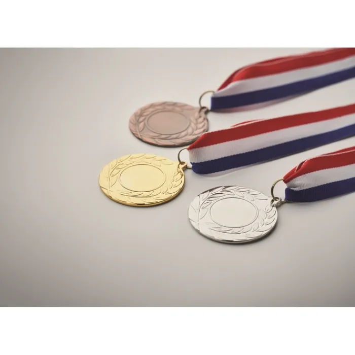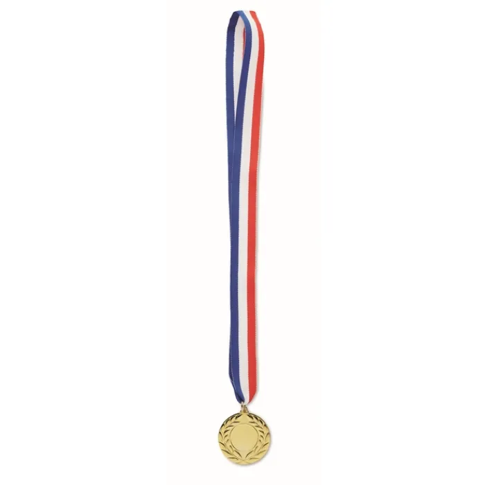 Medaglia in ferro con cordino in poliestere nei colori blu, bianco e rosso. Diametro 5 cm