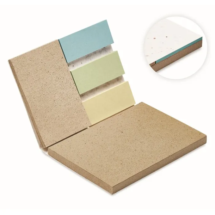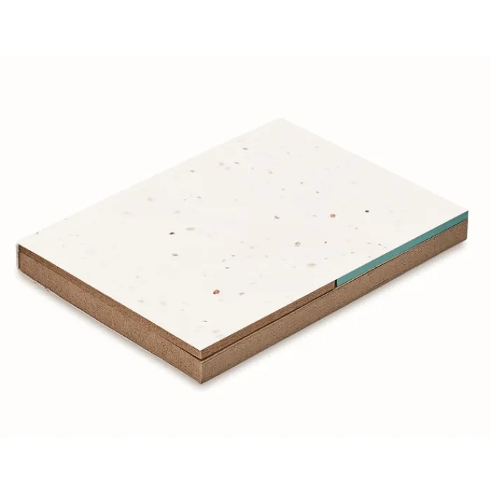 Set memo con copertina morbida contenente un blocco di 25 foglietti di carta in erba, 3 segnapagine colorati e 25 post-it di carta in erba. La copertina può essere piantata perchè contiene dei semi di fiori selvatici. Prodotto nell’UE.