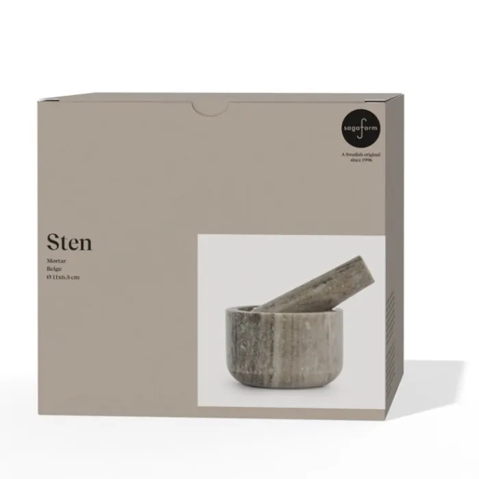 Il mortaio di Sagaform è indispensabile in ogni cucina. Questo strumento compatto ed elegante è sempre a portata di mano ed è ideale per l’uso quotidiano. Realizzato in resistente marmo travertino, questo mortaio garantisce una durabilità elevata contro l’usura e il calore. Perfetto per macinare diverse erbe e utilizzarle in zuppe, salse e marinate. Grazie alla sua finitura resistente ai graffi, manterrà il suo aspetto anche dopo un uso frequente. Presentato in una elegante scatola regalo, progettata da Studio Sagaform. Un complemento perfetto per i tuoi accessori da cucina.