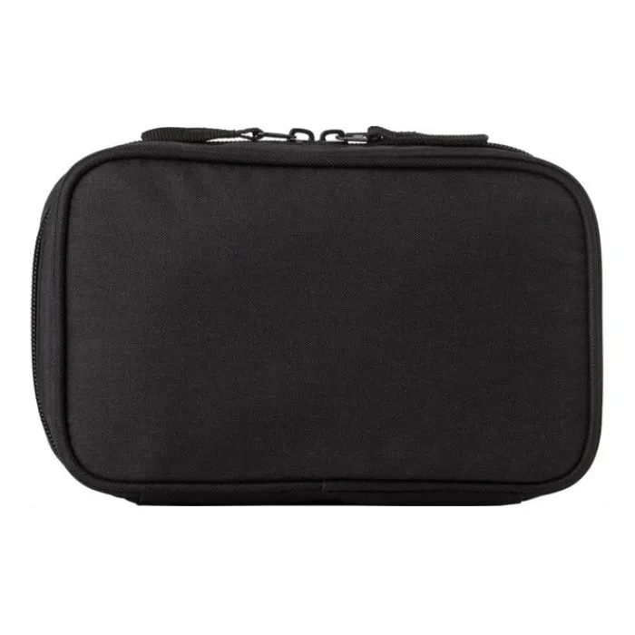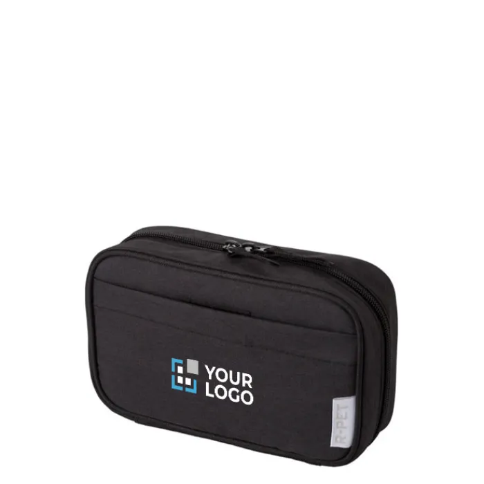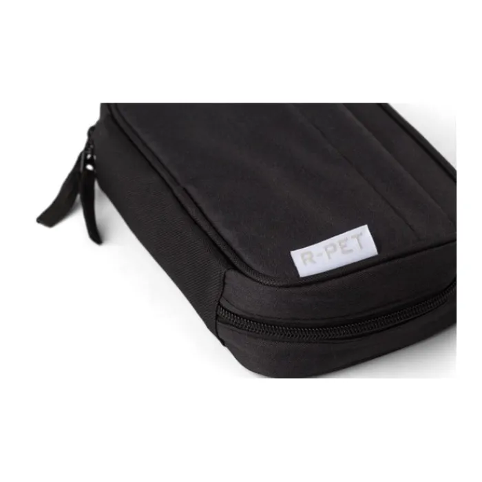 Necessaire da viaggio in poliestere rPET 600 D con chiusura lampo. Include molteplici tasche, con chiusura in velcro, per documenti e cavetti di ricarica.