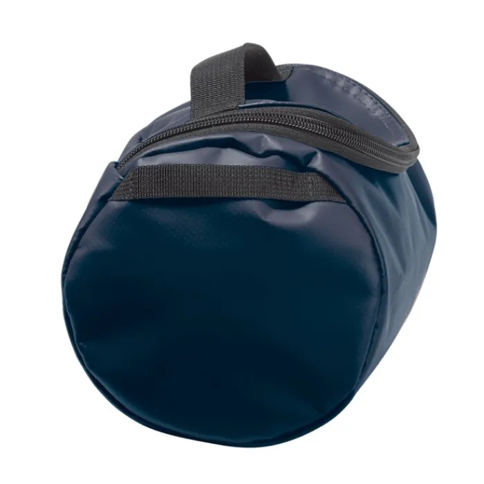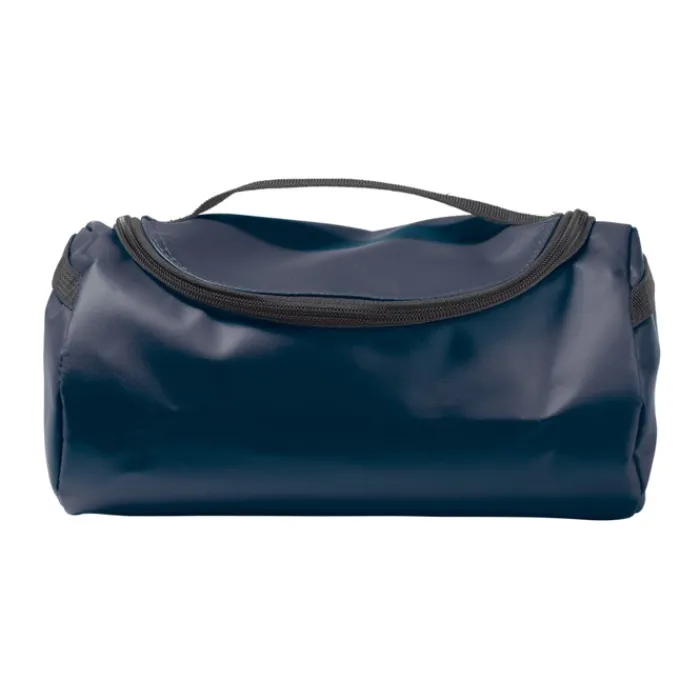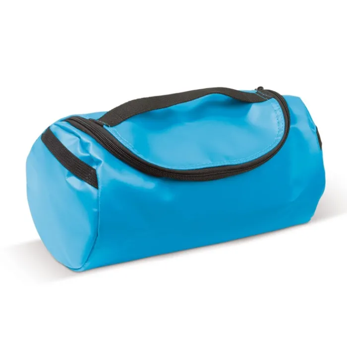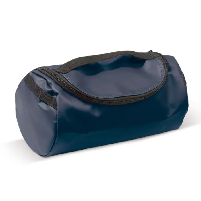 Necessaire in PVC e poliestere completamente foderato con maniglia. Ha tasche a rete all’interno.