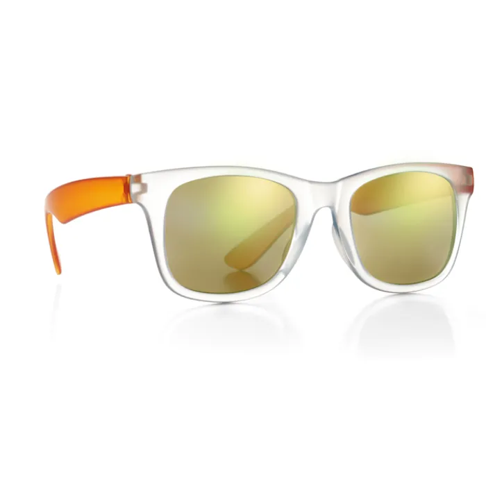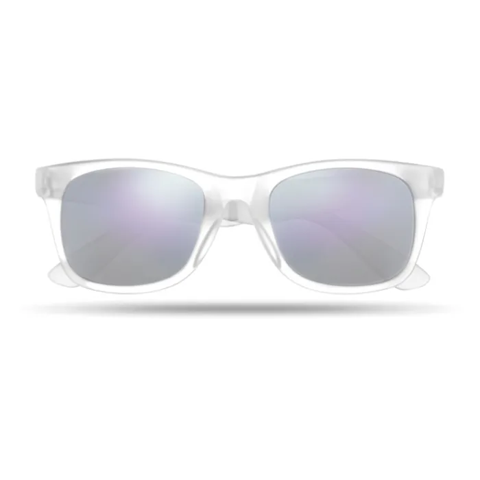 Occhiali da sole con lenti specchiate, protezione UV400. Montatura in colore abbinato alle lenti.