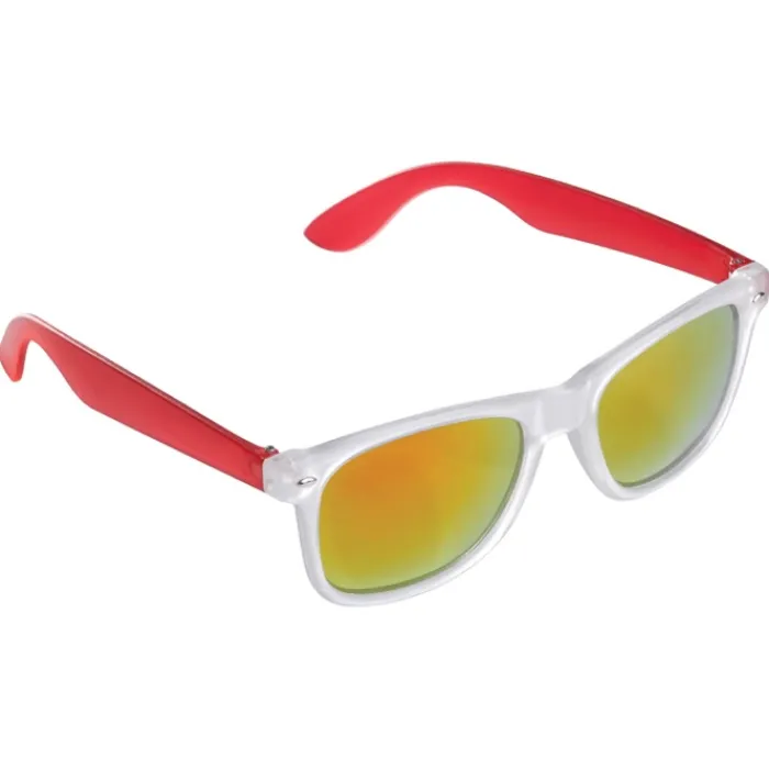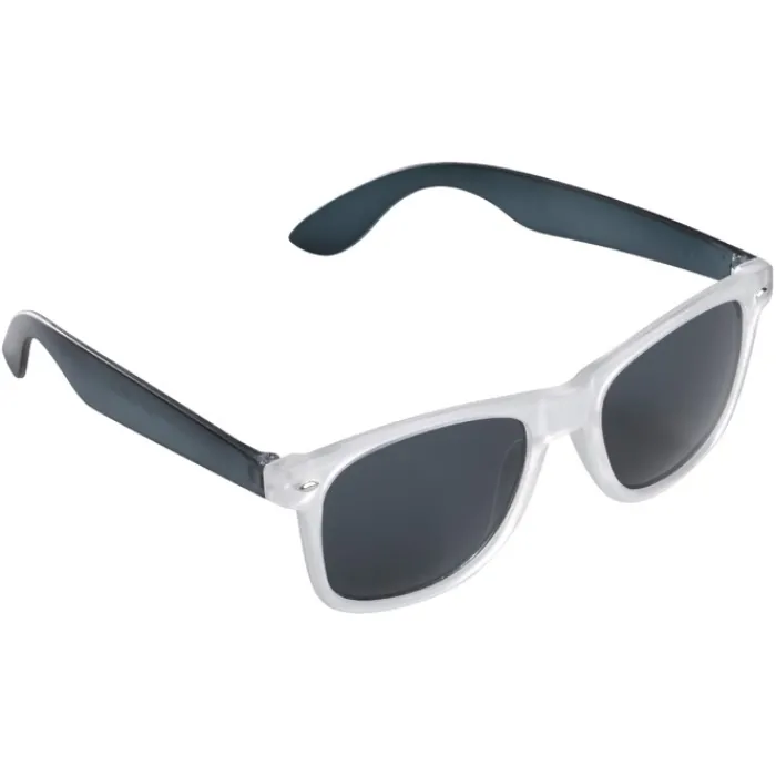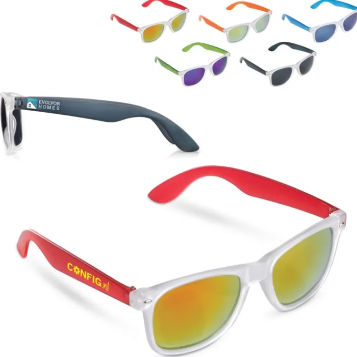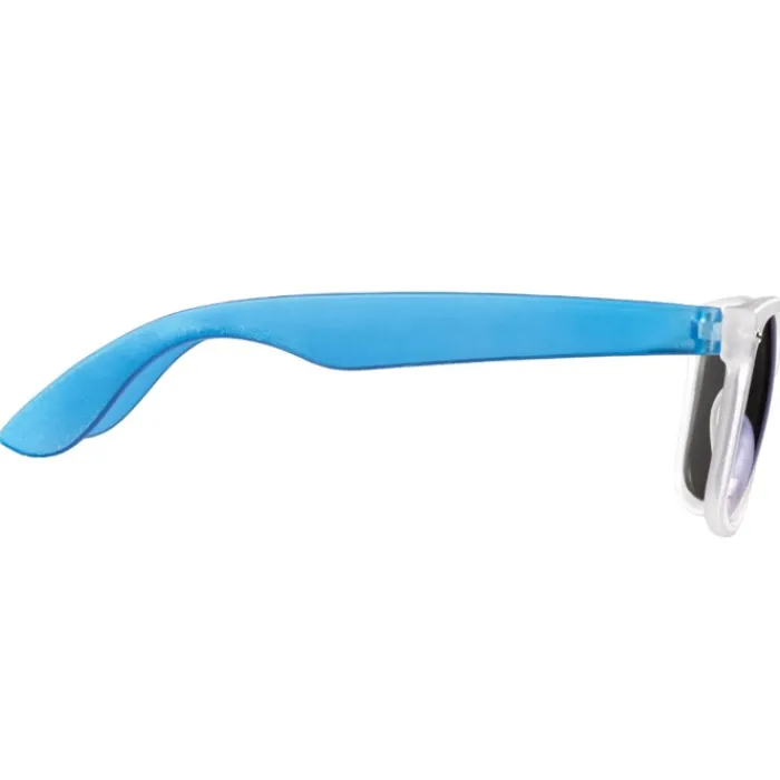 Occhiali da sole trendy con stanghette in colori satinati. Lenti colorate con protezione UV400. Realizzati in policarbonato e AC.
