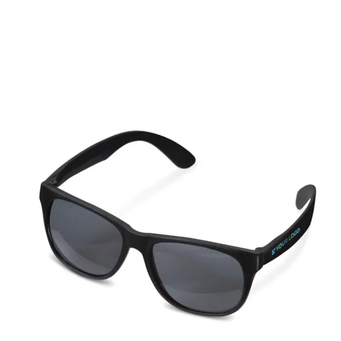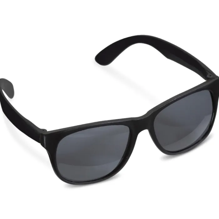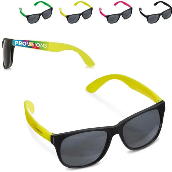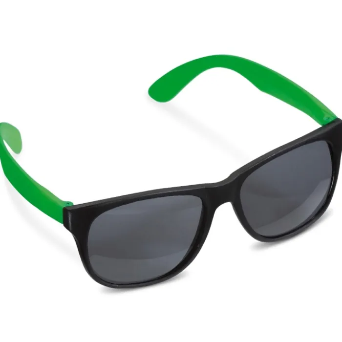 Moderni occhiali da sole neri con stanghette colorate realizzati in PP e policarbonato. Lenti con protezione UV400