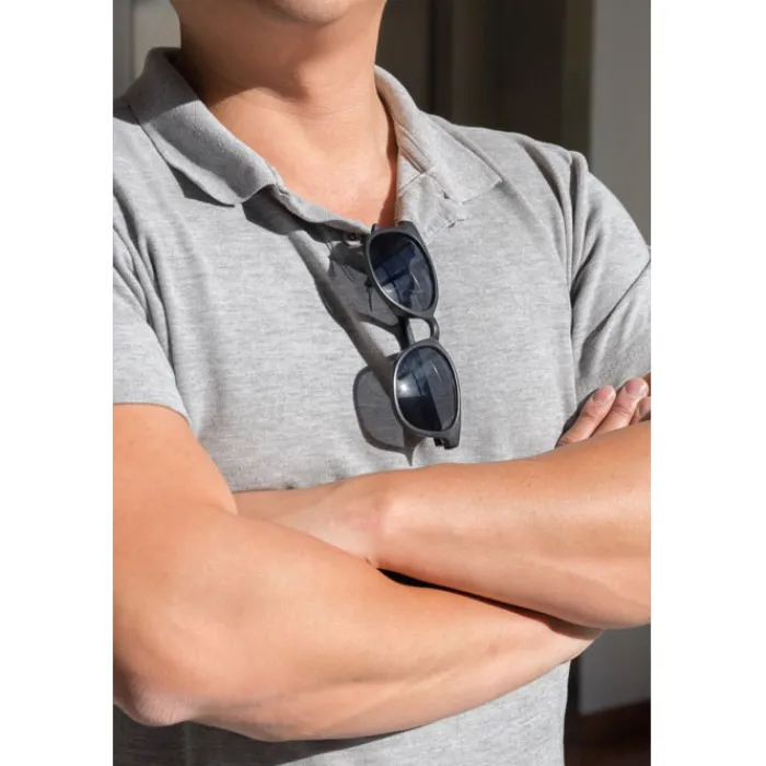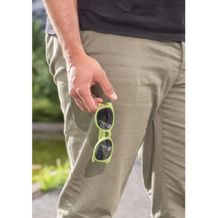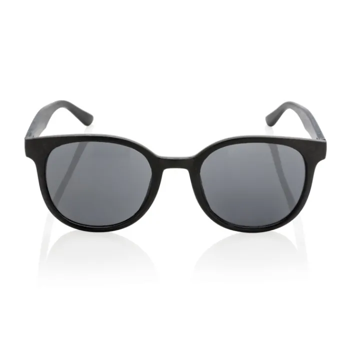 Occhiali da sole con montatura in fibra di grano. Confezionata in scatola di cartoncino. Protezione UV 400.