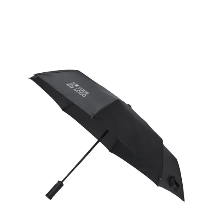 Ombrello tascabile da 23 pollici con diametro di 105 cm e tela in pongee 190T rPET. Pratica impugnatura rotante a 180º in gomma soft touch, che comprende una torica da 1 LED con pulsante ON/OFF. Apertura e chiusura automatiche, con meccanismo antivento e stecche in fibra di vetro. Presenta l’etichetta del logo rPET. Alimentazione con batterie a bottone incluse. L’rPET è realizzato in plastica riciclata, promuovendo così il riutilizzo dei rifiuti di plastica e contribuendo alla sostenibilità del pianeta.