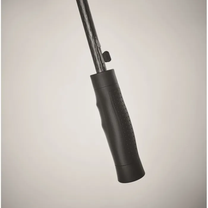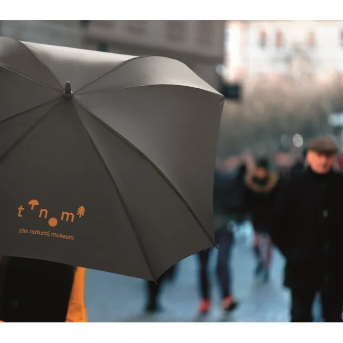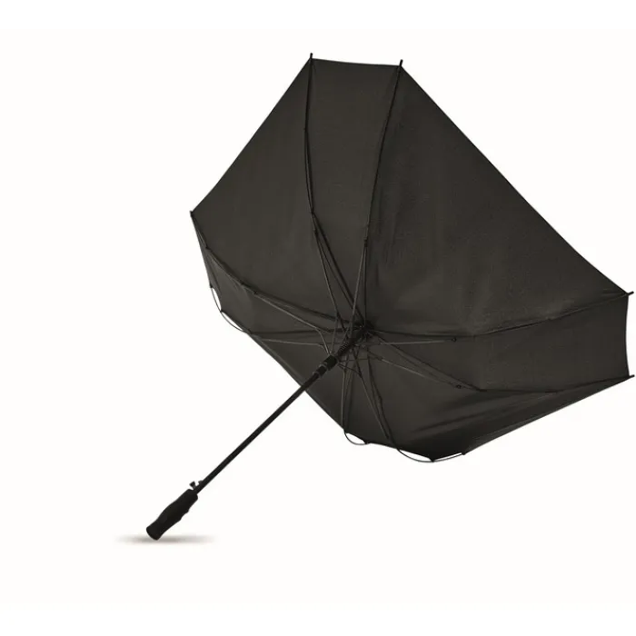 Ombrello antivento squadrato da 27 pollici, in Ponge 190T con apertura e chiusura automatica. Manico in gomma ABS. Stecche in fibra di vetro.
