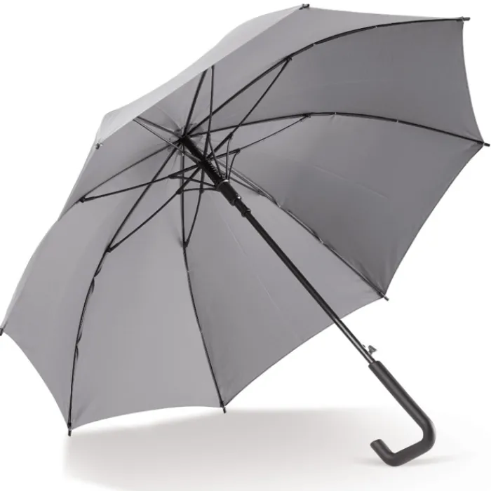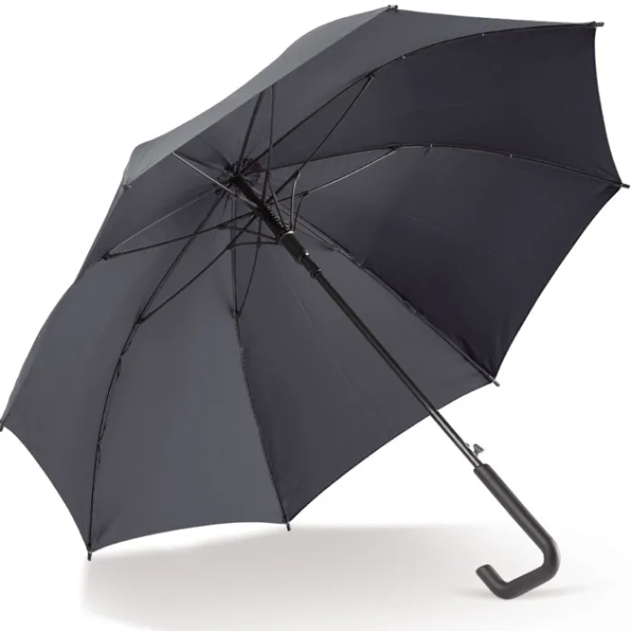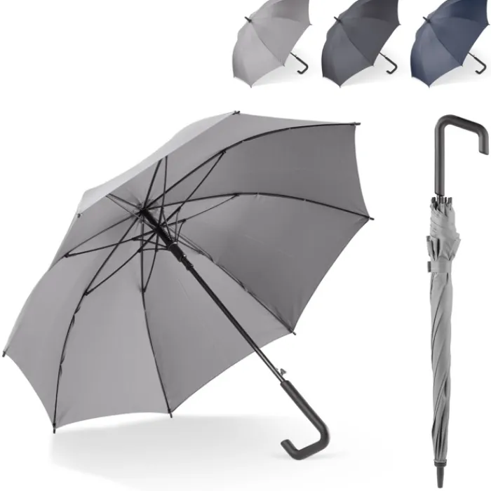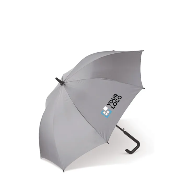 Ombrello da 23″ con manico di design. Il telaio è completamente realizzato in fibra di vetro ed è resistente al vento. Tela in poliestere pongee 170T.