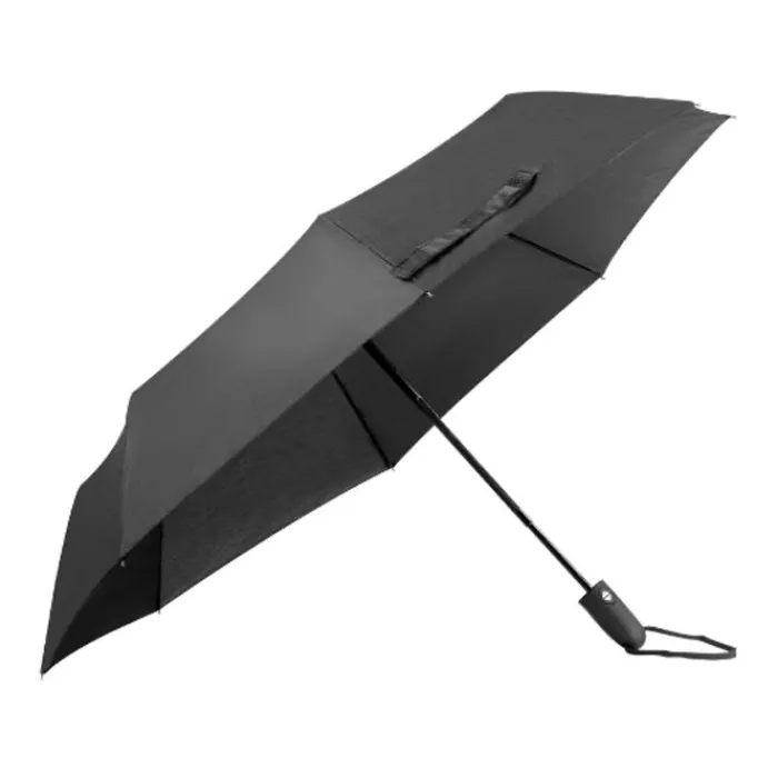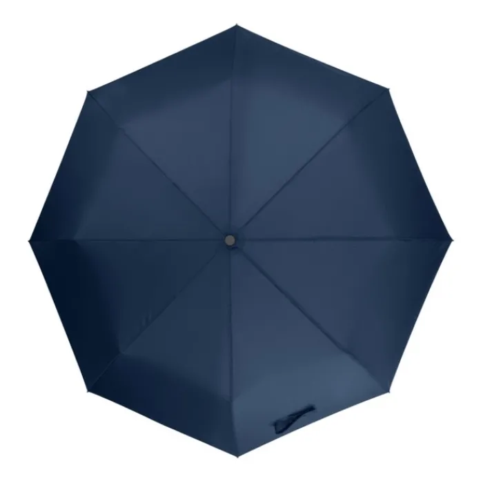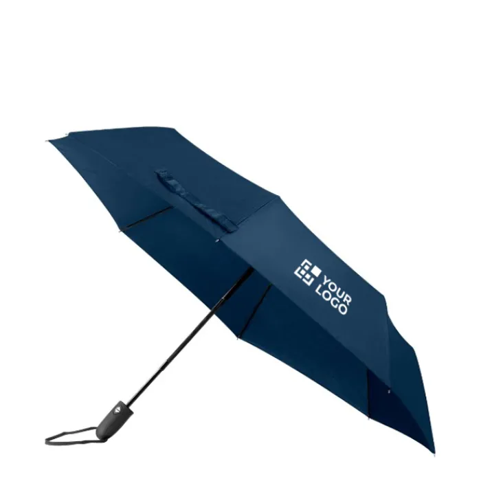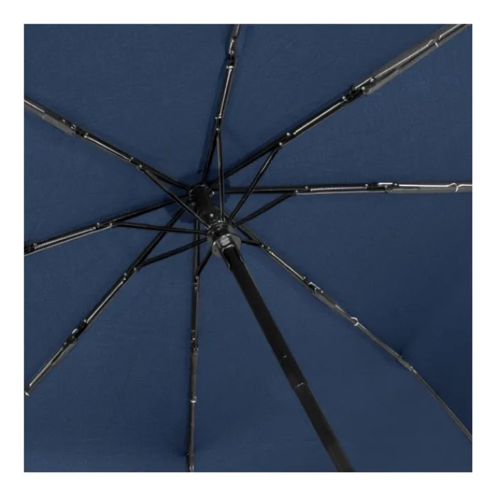 Ombrello pieghevole dal diametro di 95 cm ad apertura/chiusura automatica con 8 pannelli. Struttura in acciaio, stecche in fibra di vetro e copertura in RPET pongee con certificazione GRS.