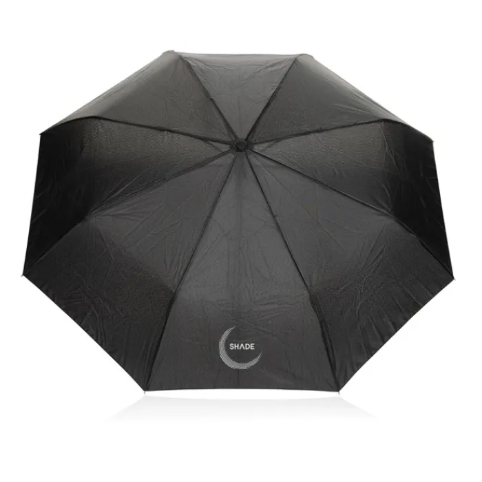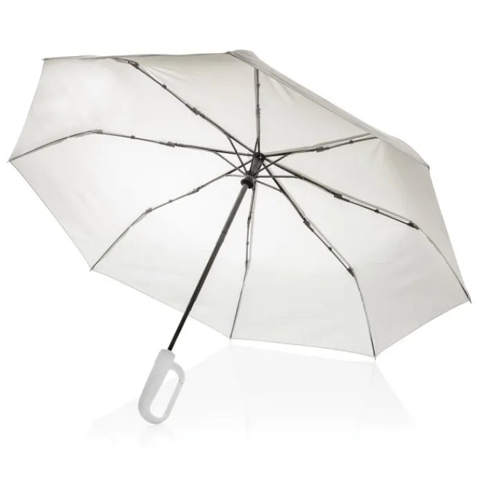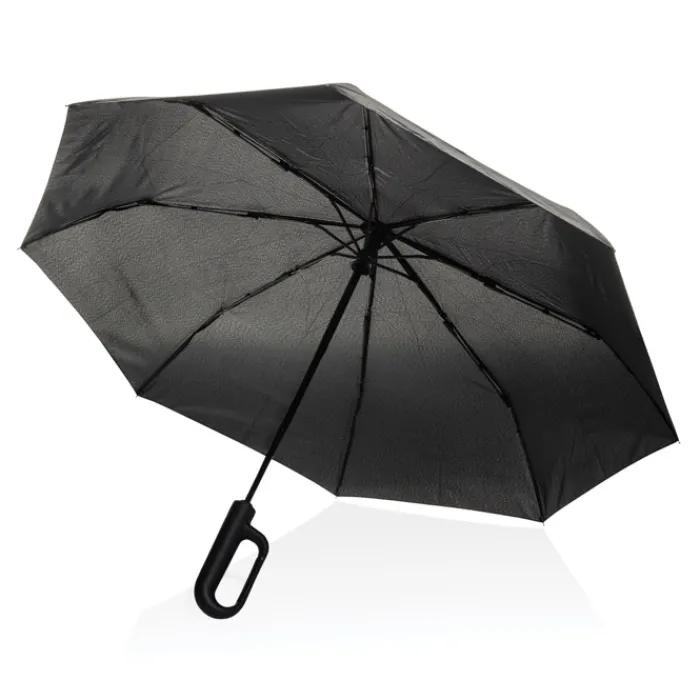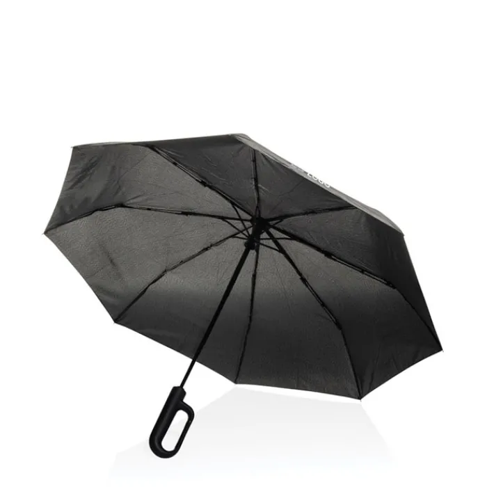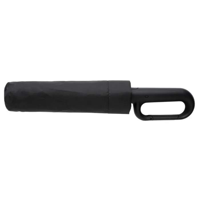 Ombrello pieghevole in rPET progettato per mantenerti asciutto durante tutti i tuoi spostamenti. Facile da portare, è dotato di un comodo manico ad apertura automatica e di un sistema antivento che lo mantiene stabile anche in caso di vento forte. L’esclusivo design del manico a moschettone consente di fissare l’ombrello allo zaino. Struttura in metallo, stecche in fibra di vetro e manico in ABS. Include il tracciante AWARE™, che attesta l’uso autentico di materiali riciclati. Il 2% del ricavato della vendita di questo prodotto sarà devoluto a Water.org. Design registrato.