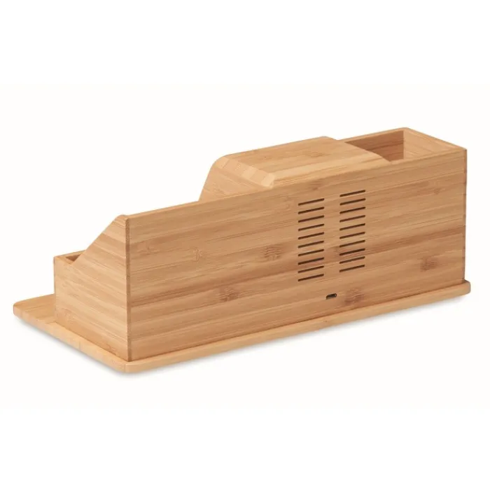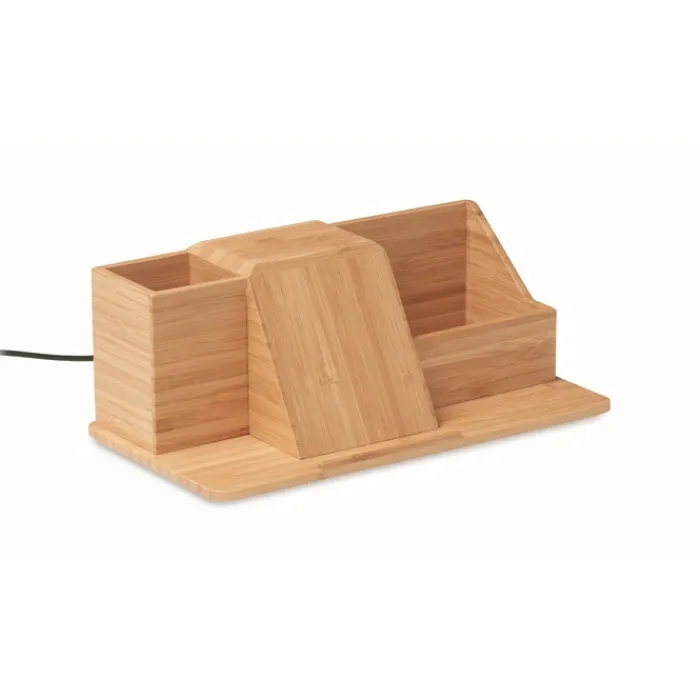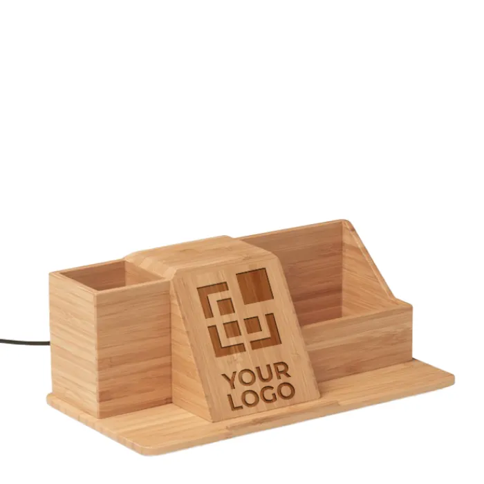 Organizer da scrivania in bambù con portapenne, supporto per telefono e caricabatterie wireless da 10 W. Carica il tuo dispositivo mobile direttamente sulla tua scrivania posizionandolo sull’organizer. L’organizer stesso ha spazio per penne o matite, note adesive o altri piccoli oggetti essenziali per l’ufficio. Uscita: DC 9V/1.1A (10W) per una ricarica rapida. Compatibile con gli ultimi Android, iPhone® 8 e successivi. Il bambù è un prodotto naturale, per cui possono esserci leggere variazioni di colore tra un prodotto e l’altro.