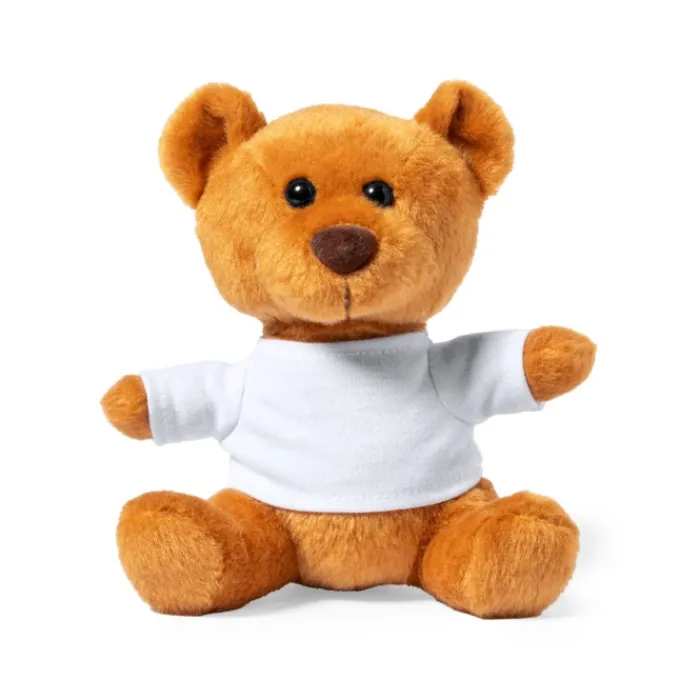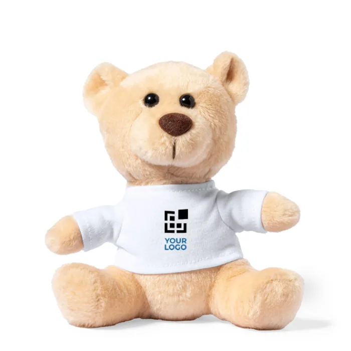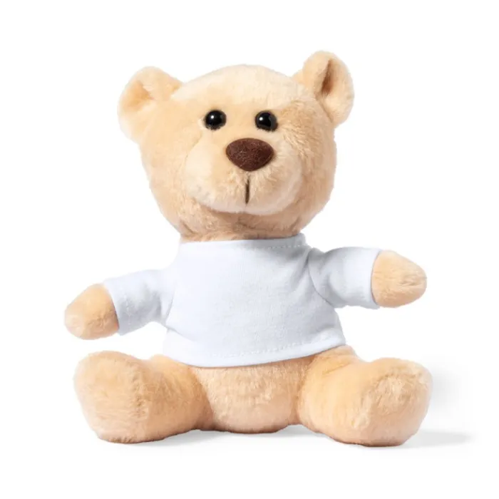 Morbido e tenero orsetto di peluche con maglietta bianca rimovibile.