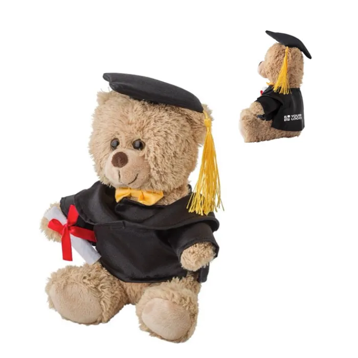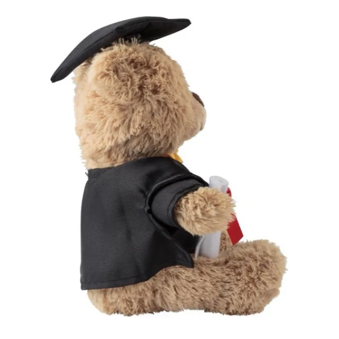 Orsetto di peluche orsetto laureato, con cappello e toga in poliestere con effetto seta. Ha in mano un diploma. Include un’etichetta personalizzabile.