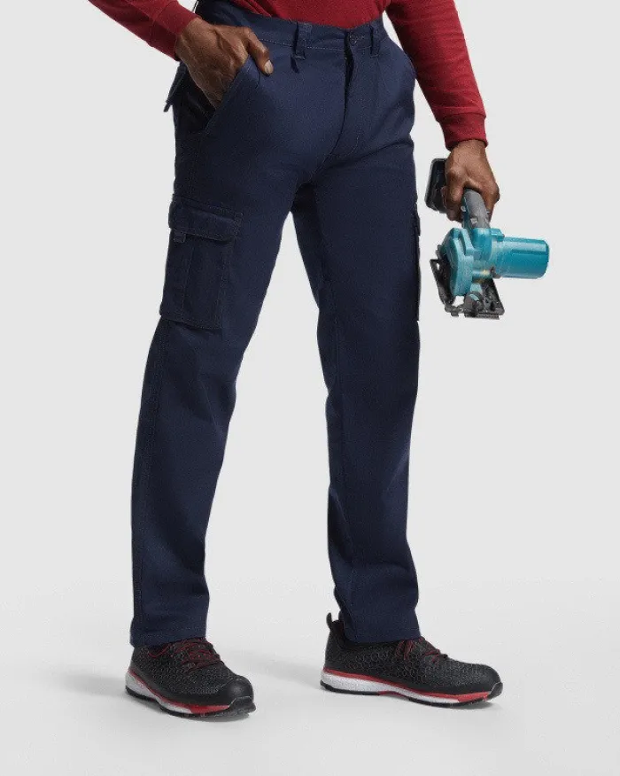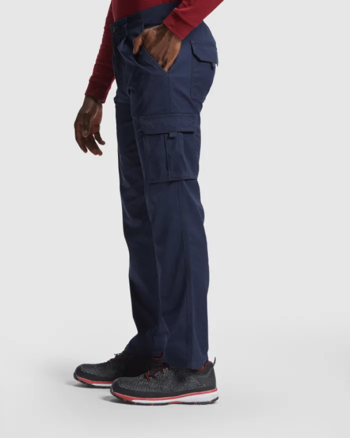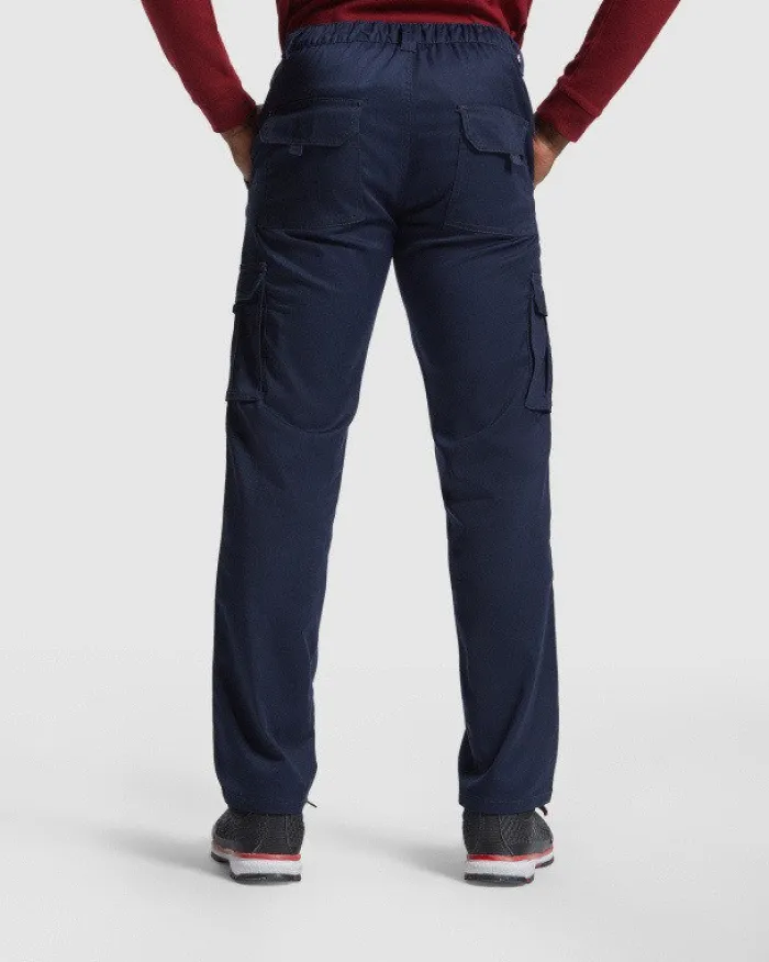Pantaloni lunghi con elastan, pensati per offrire una maggiore libertà di movimento. Realizzati in tessuto confortevole e flessibile, con cuciture a contrasto e girovita elastico regolabile sul retro. Dotati di due tasche frontali, due tasche posteriori funzionali con patta e chiusura a velcro, e due tasche laterali con patta e chiusura a velcro.