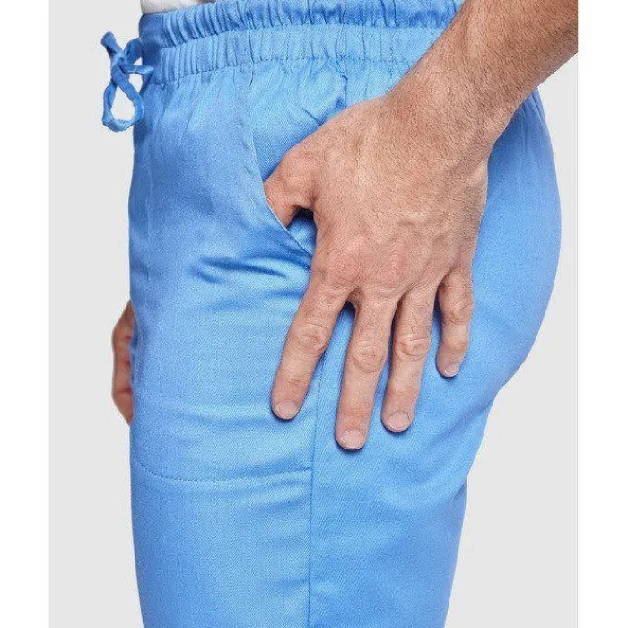 Pantaloni lunghi unisex a taglio dritto, con girovita elastico e cinturino regolabile, dotati di tasche francesi.