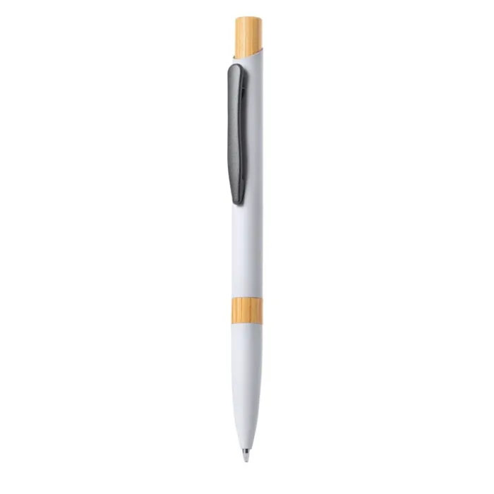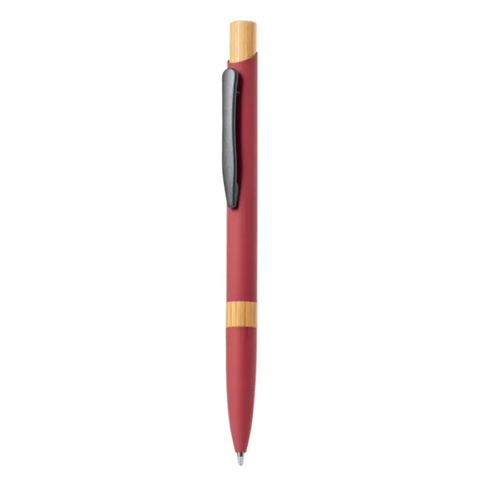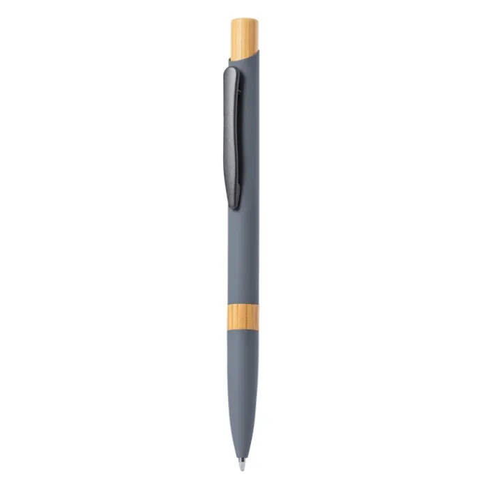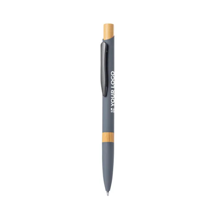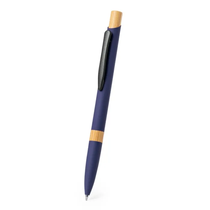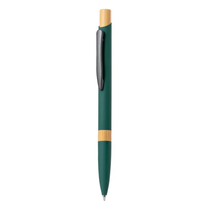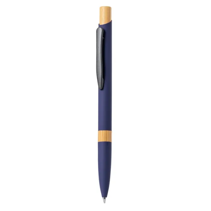 Elegante penna con meccanismo a pulsante. Robusto fusto in alluminio con finitura gommata opaca e inserti in bambù, con fusto in una gamma di colori esclusivi. Clip in metallo ed inchiostro jumbo blu. Presentata in un astuccio individuale riciclato. Materiali come il bambù favoriscono l’utilizzo di materie prime naturali, riducendo le emissioni inquinanti. Proviene da una pianta altamente resistente e versatile, con una crescita e una rigenerazione rapida, che lo rende un’ottima alternativa all’uso del legno tradizionale.