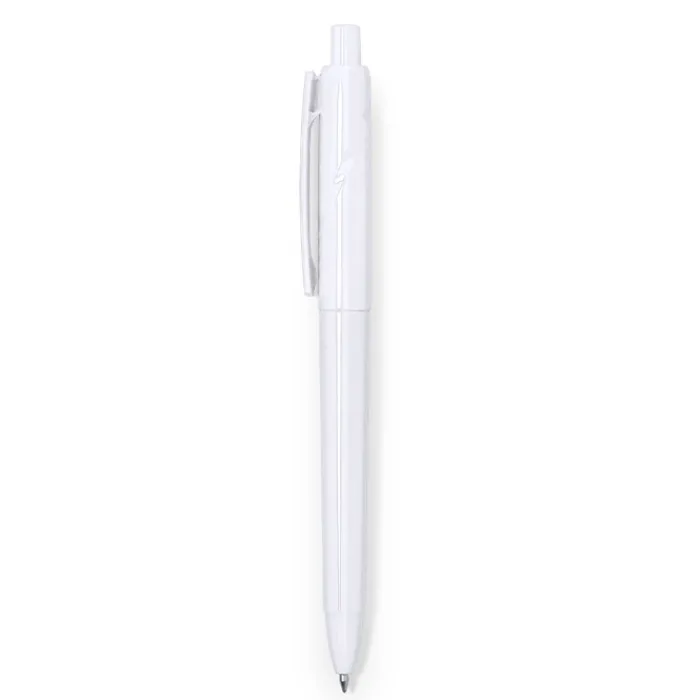 Penna con meccanismo a pulsante realizzata in RPET, plastica riciclata, per promuovere il riutilizzo dei rifiuti plastici e contribuire alla sostenibilità del pianeta. Inchiostro blu. Sulla parte superiore riporta la scritta “RPET”.