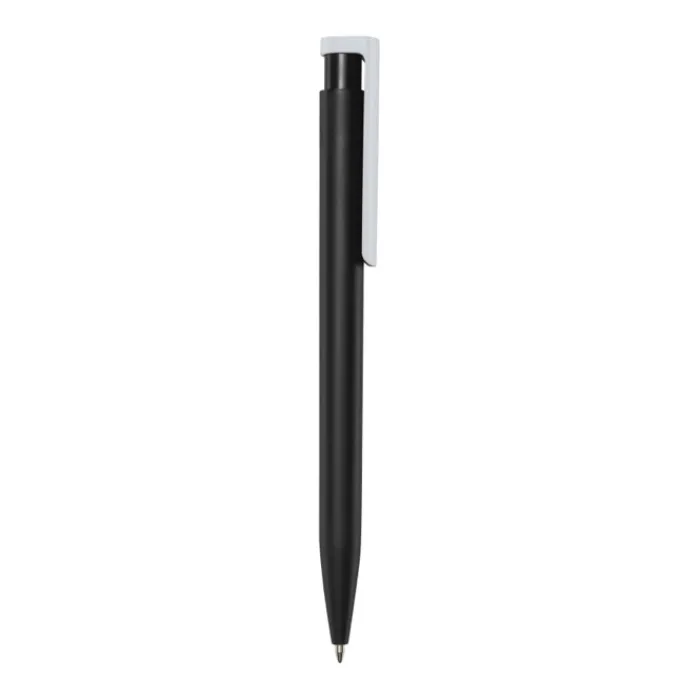 Penna a sfera realizzata in plastica riciclata. Colore dell’inchiostro: nero. Capacità di scrittura: 500 metri. Dimensione del pennino: 1,0 mm.