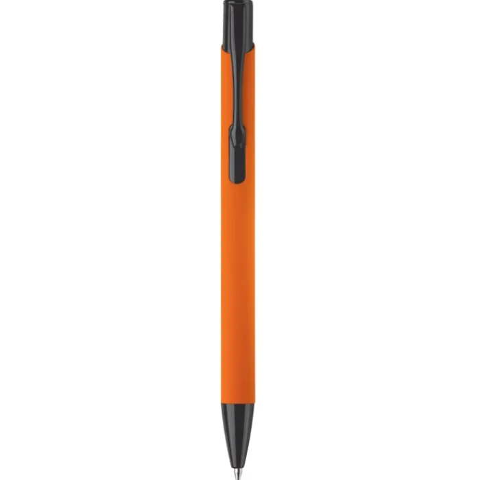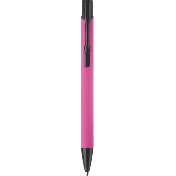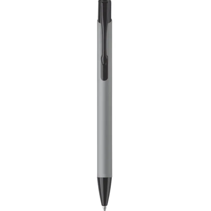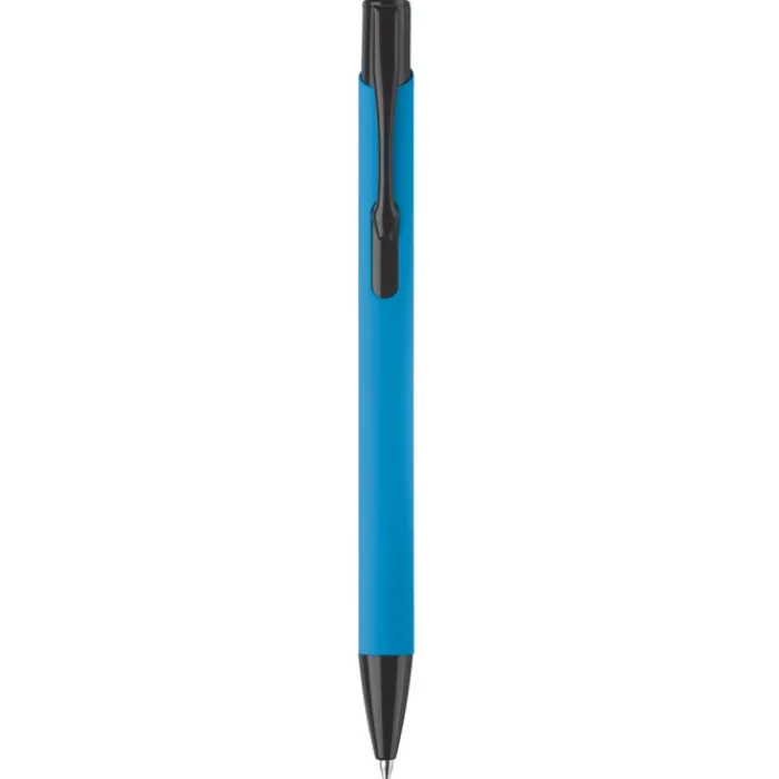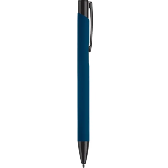 Penna a sfera in metallo opaco con finitura gommata morbida in tanti colori trendy. La gommatura la rende un articolo da regalo alla moda. Clip, pulsante e punta a contrasto in nero. Inchiostro blu.