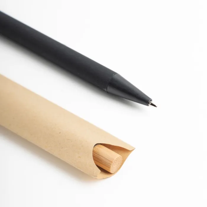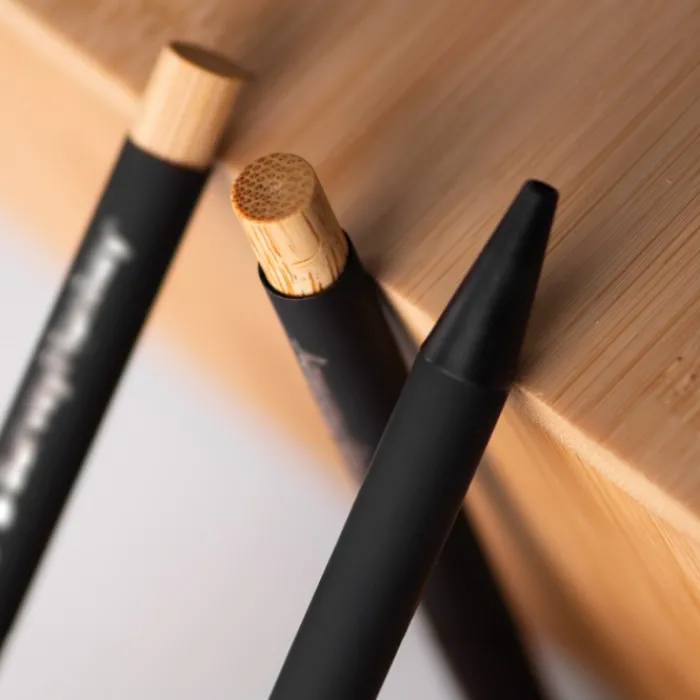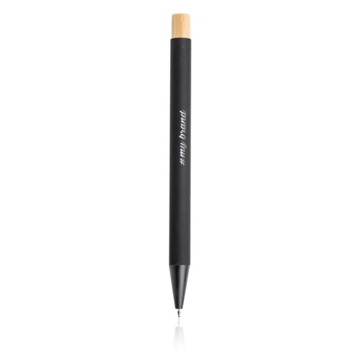 Penna con meccanismo a pressione dal corpo in alluminio riciclato e agorà con un simpatico bottone in bambù, un design elegante e durevole. Inchiostro nero L’alluminio è un materiale altamente sostenibile grazie alla sua riciclabilità. Il tasso di riciclaggio dei metalli è uno dei più alti, con oltre il 90% da riciclare in tutto il mondo. Ciò significa che l’alluminio può essere fuso e riutilizzato nella produzione di nuovi prodotti, riducendo la necessità di nuovi minerali e l’estrazione di materie prime.