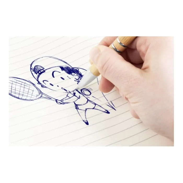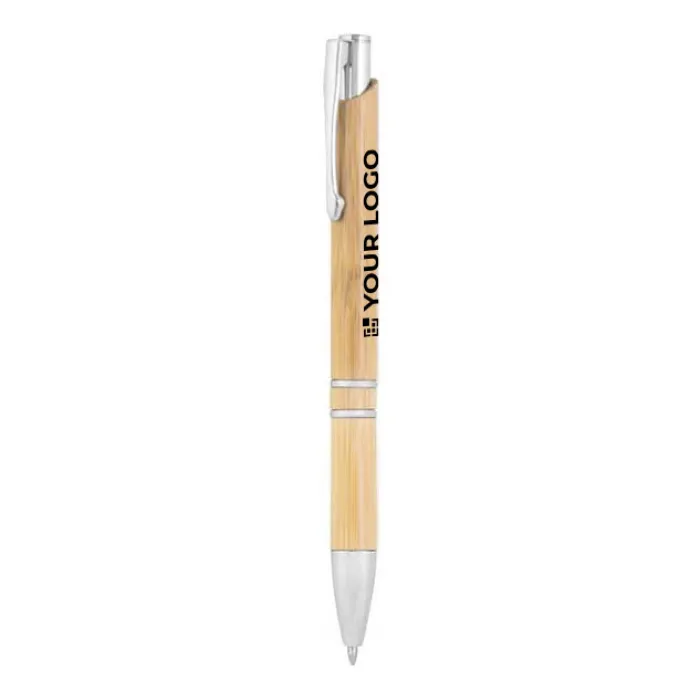 Penna con corpo in bambù con dettagli e clip in alluminio. Inchiostro blu.