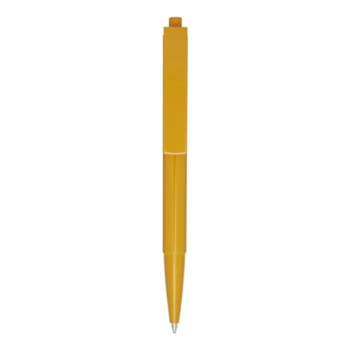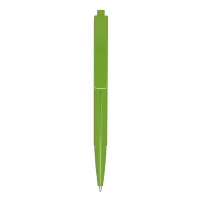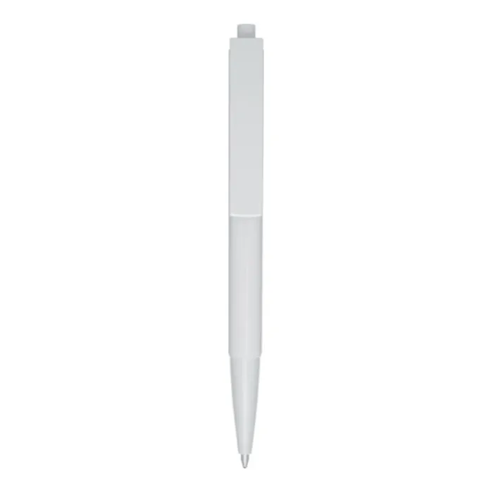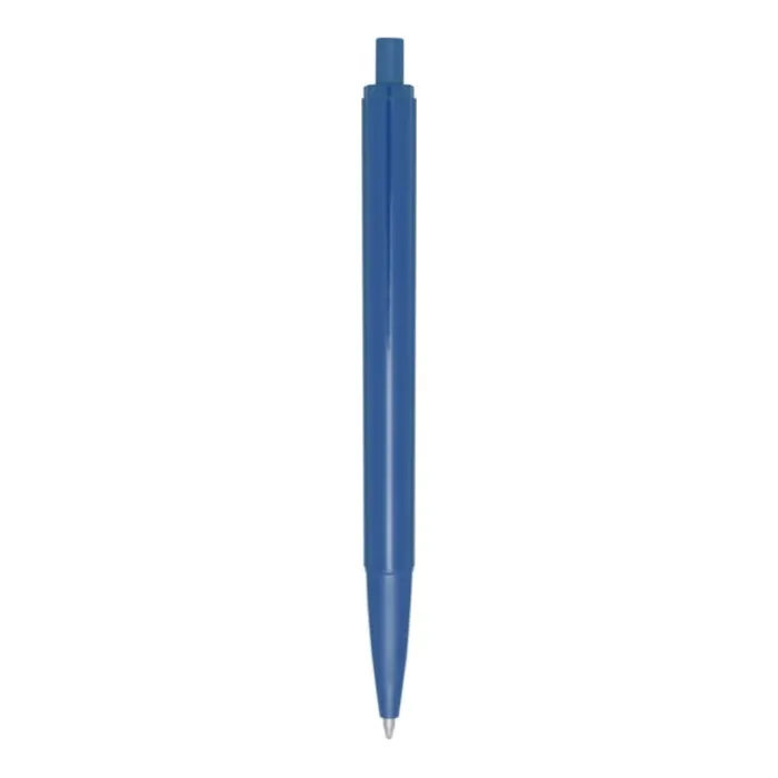 Penna a sfera con fusto e pulsante in plastica ABS riciclata, mentre la molla è in acciaio. Inchiostro blu. Capacità di scrittura: 1800 metri. Dimensione del pennino: 1,00 mm. Prodotta in Italia.