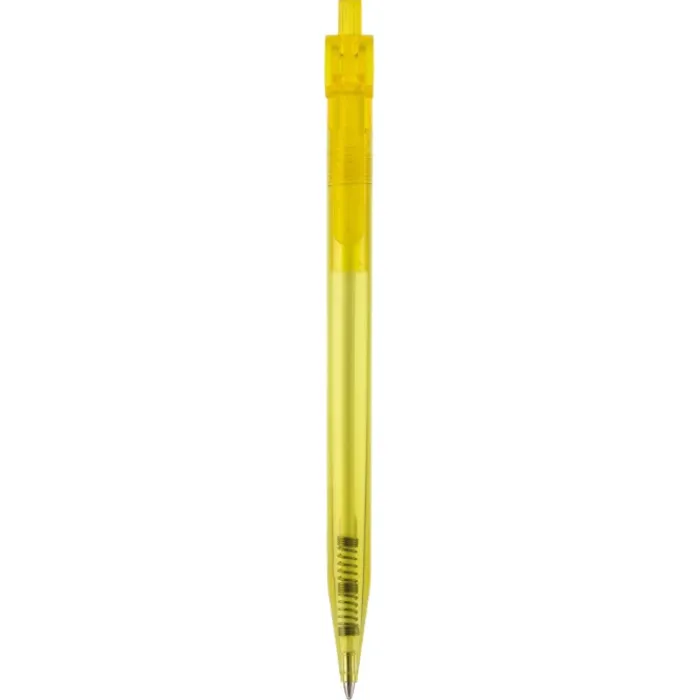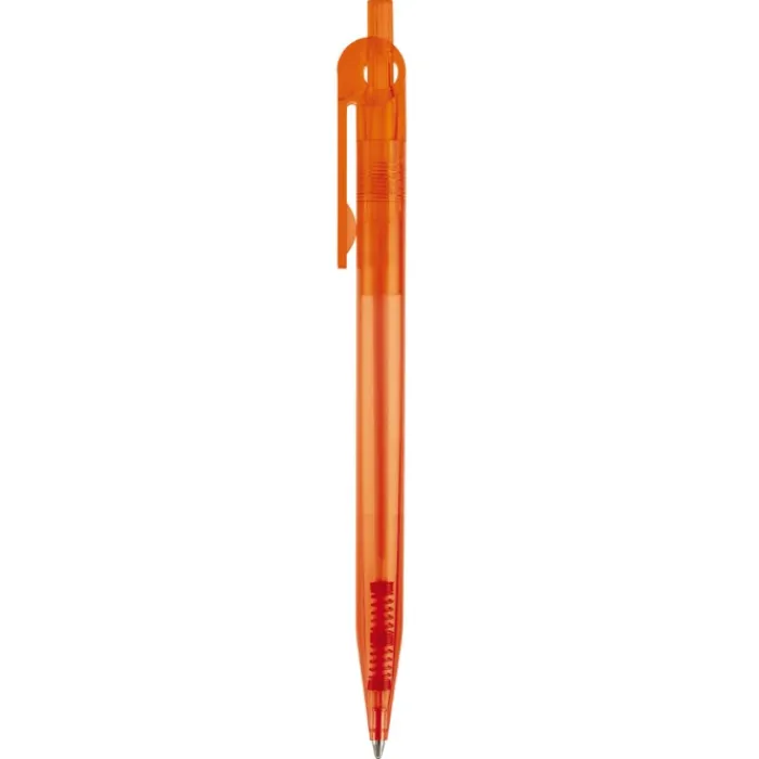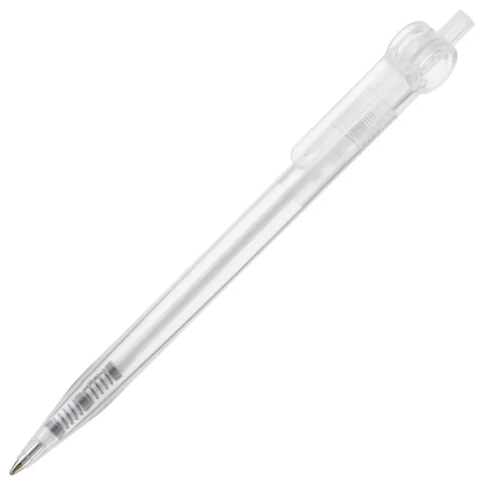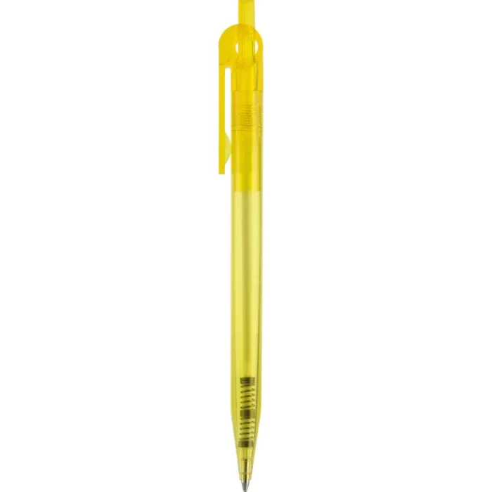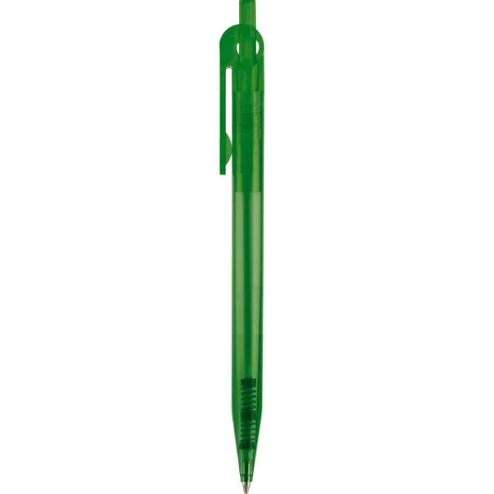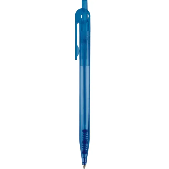 Penna a sfera sintetica con clip piatta. Realizzata con plastica colorata trasparente. Inchiostro sintetico X-20 blu. Prodotta in Germania.