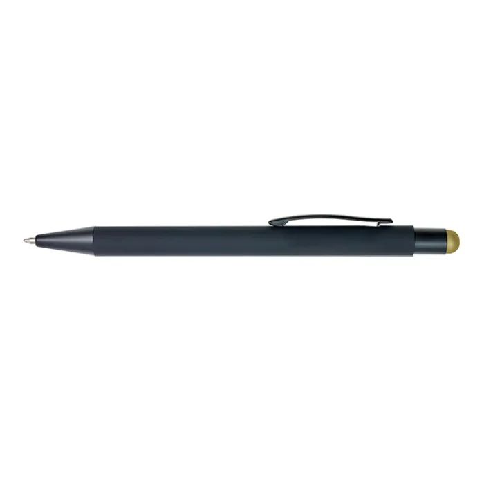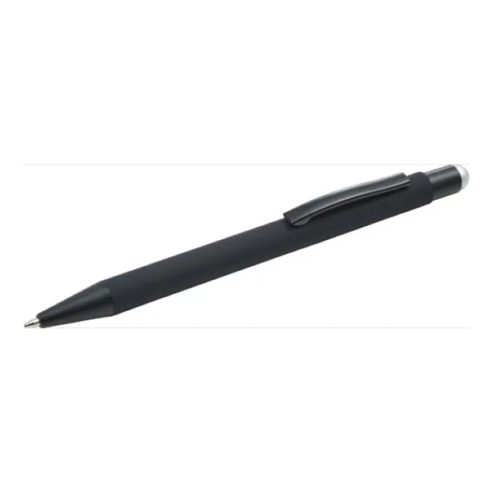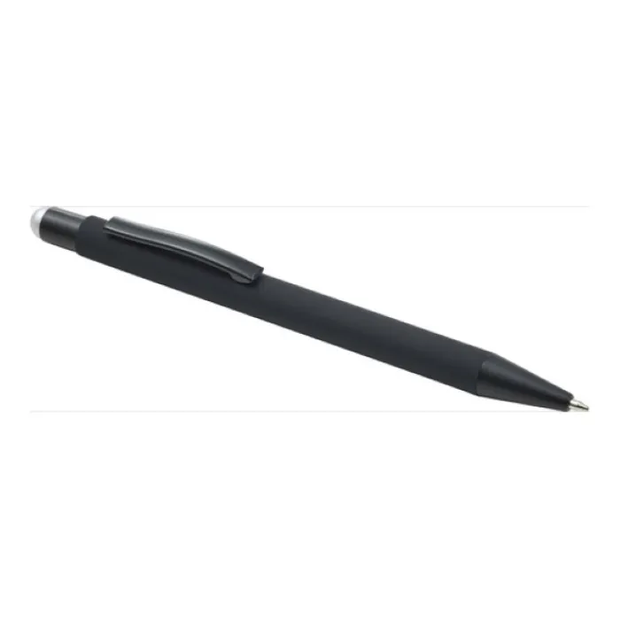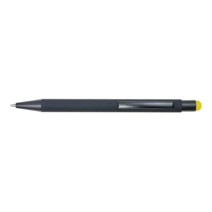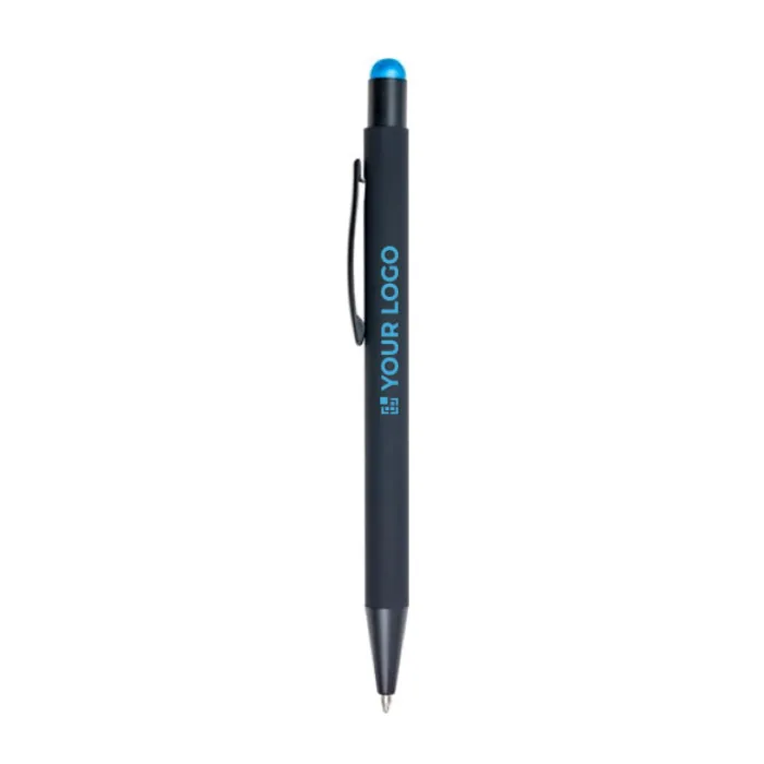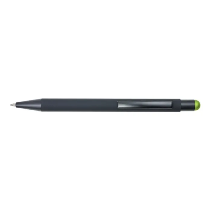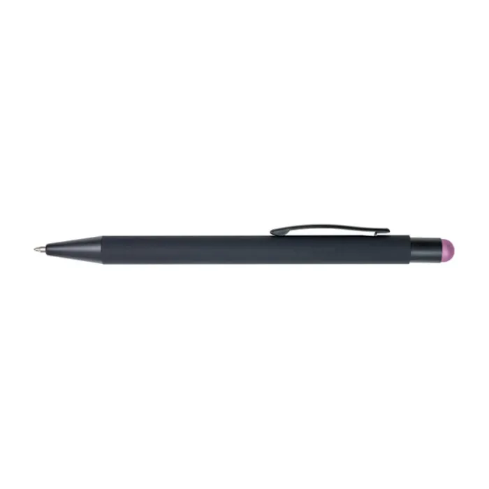Penna a sfera con gommino touch screen. Fusto in gomma colorata interna. Se personalizzate con l’incisione laser il logo sarà dello stesso colore del gommino. Inchiostro blu.